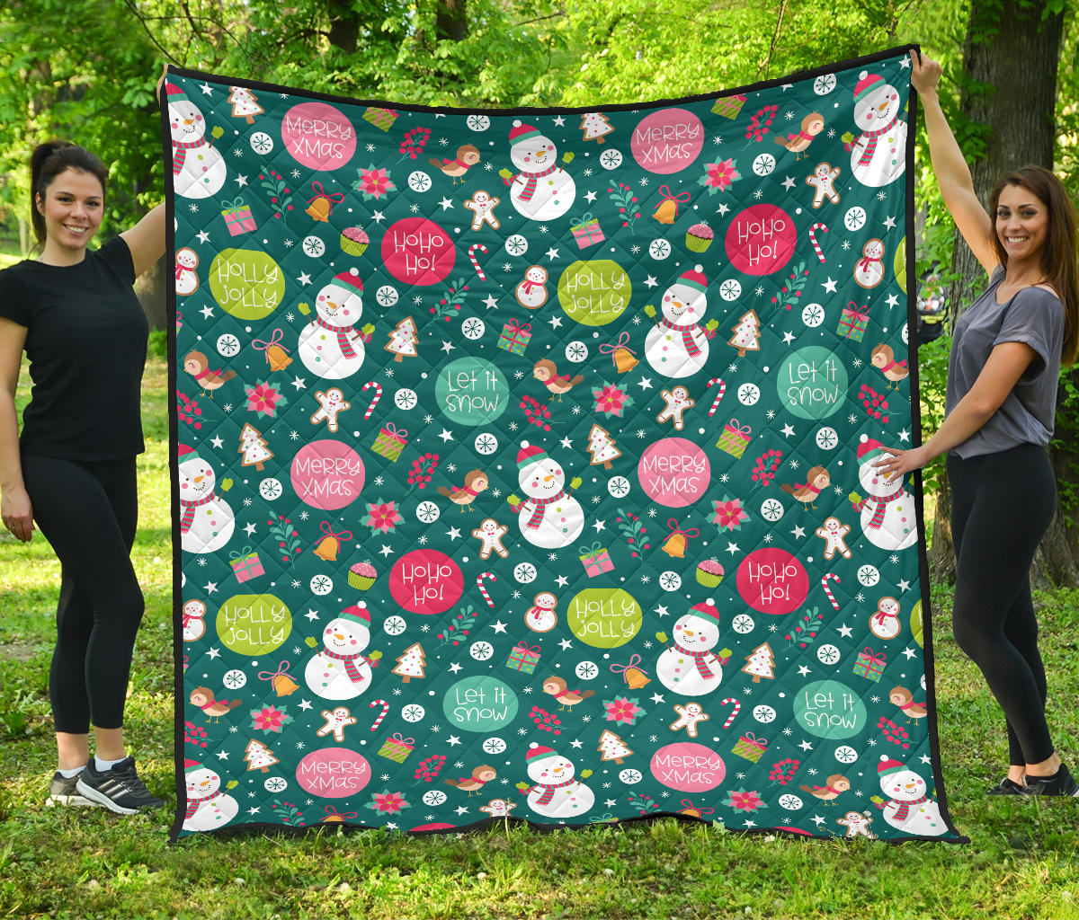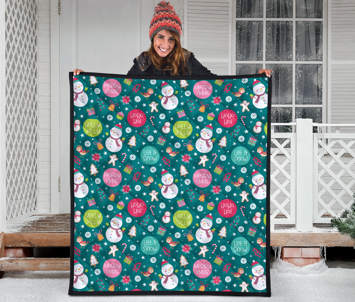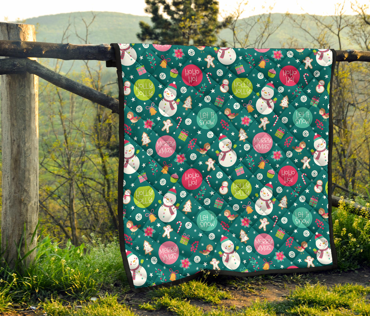 Snowman Bird Decorative Elements Christmas Pattern Premium Quilt is a uniqued design and limited item. It made to order, hand printed, and sewn with love in our factory.