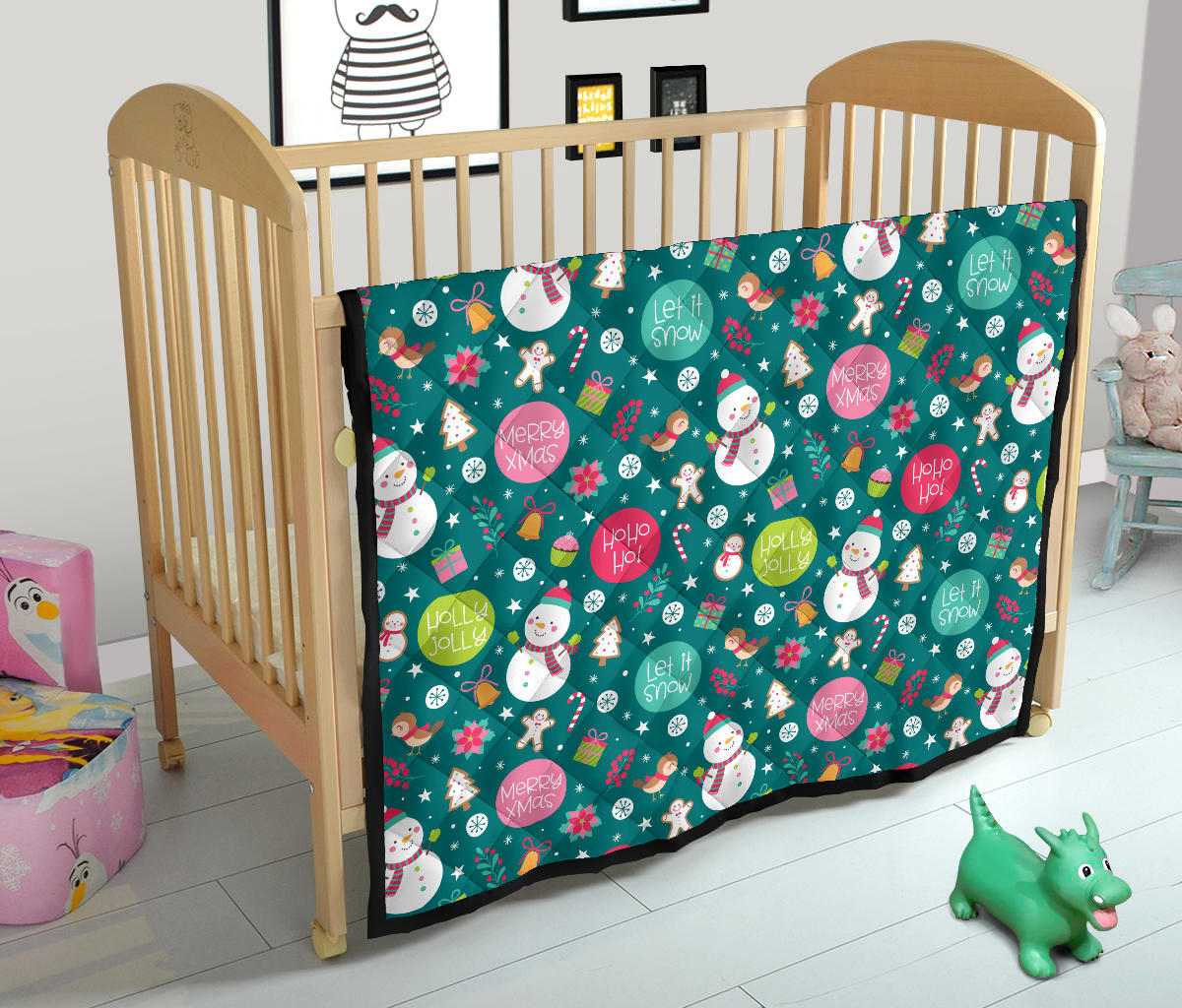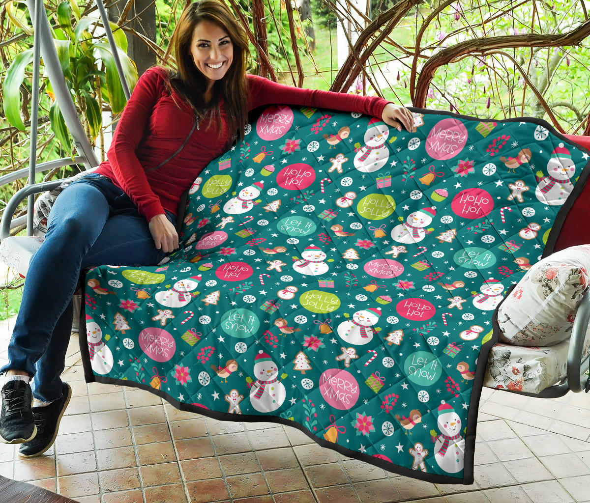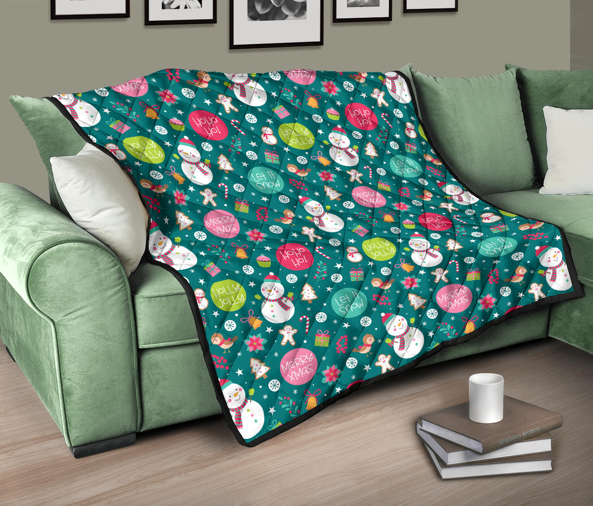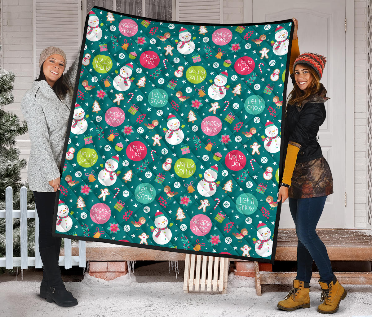 Snowman Bird Decorative Elements Christmas Pattern Premium Quilt is a uniqued design and limited item. It made to order, hand printed, and sewn with love in our factory.