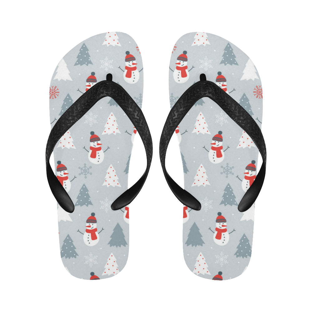 Snowman christmas tree snow gray background Unisex Flip Flops is a uniqued design and limited item. It made to order, hand printed, and sewn with love in our factory.