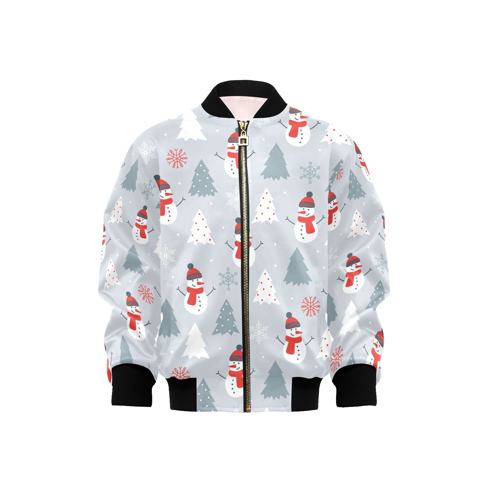 Snowman christmas tree snow gray background Kids' Boys' Girls' Bomber Jacket