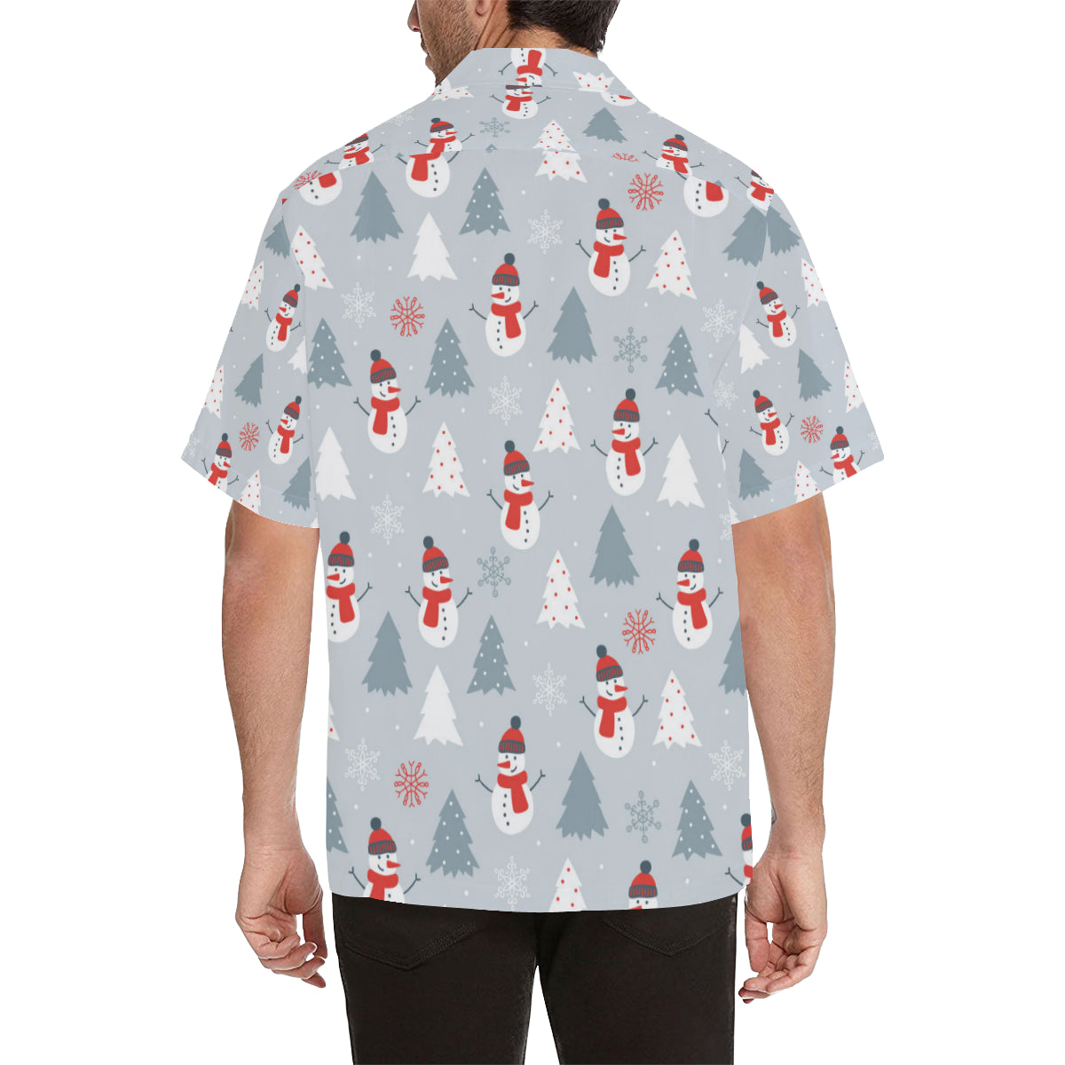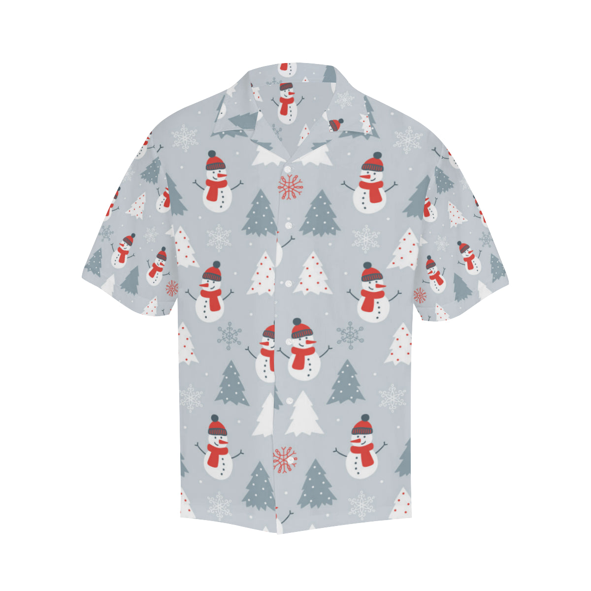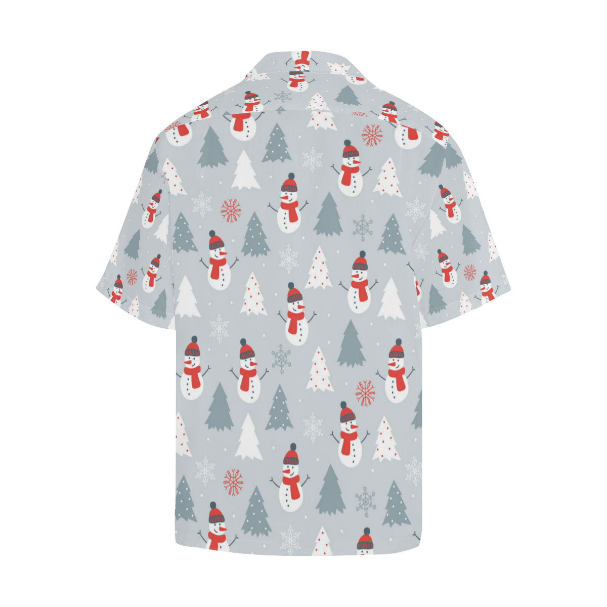 Snowman christmas tree snow gray background Men's All Over Print Hawaiian Shirt is a uniqued design and limited item. It made to order, hand printed, and sewn with love in our factory.