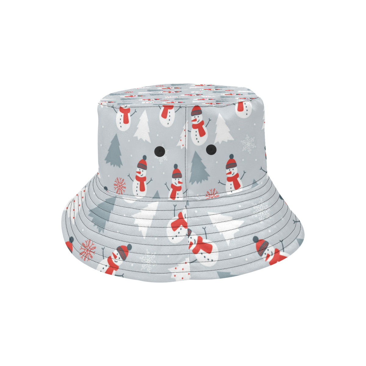 Snowman christmas tree snow gray background Unisex Bucket Hat