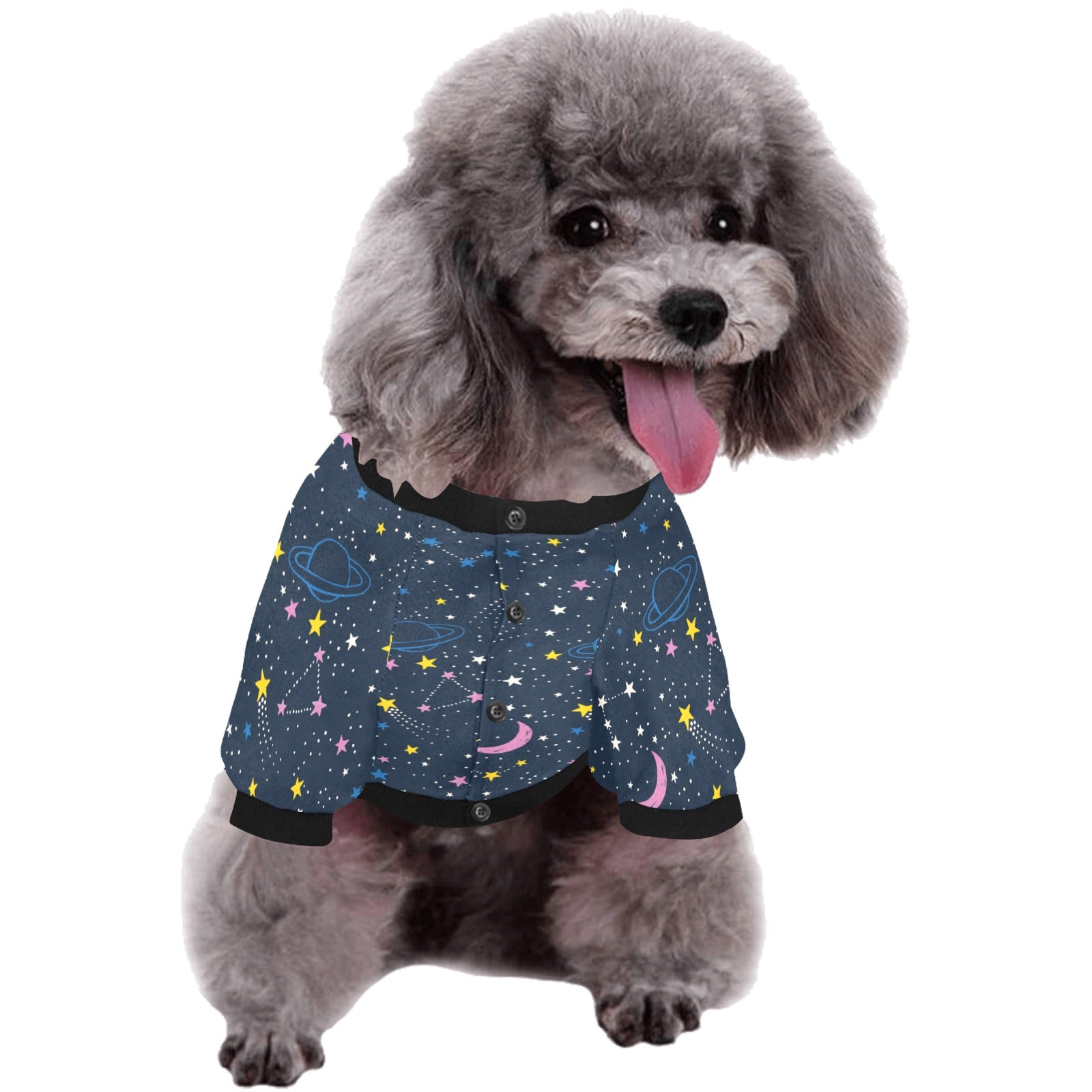 space pattern with planets, comets, constellations All Over Print Pet Dog Round Neck Fuzzy Shirt