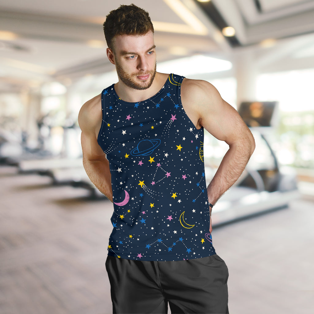 space pattern with planets, comets, constellations and stars Men Tank Top