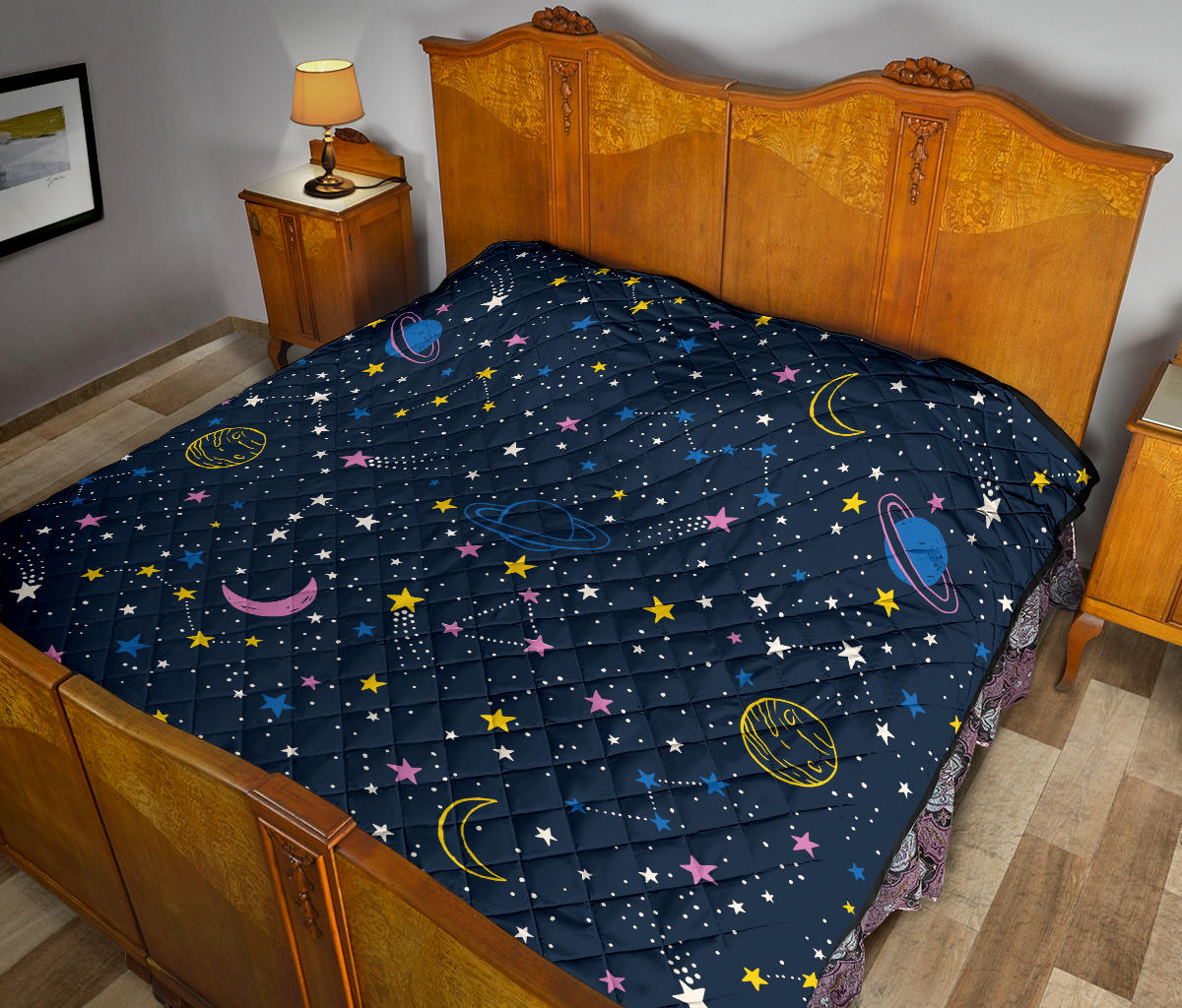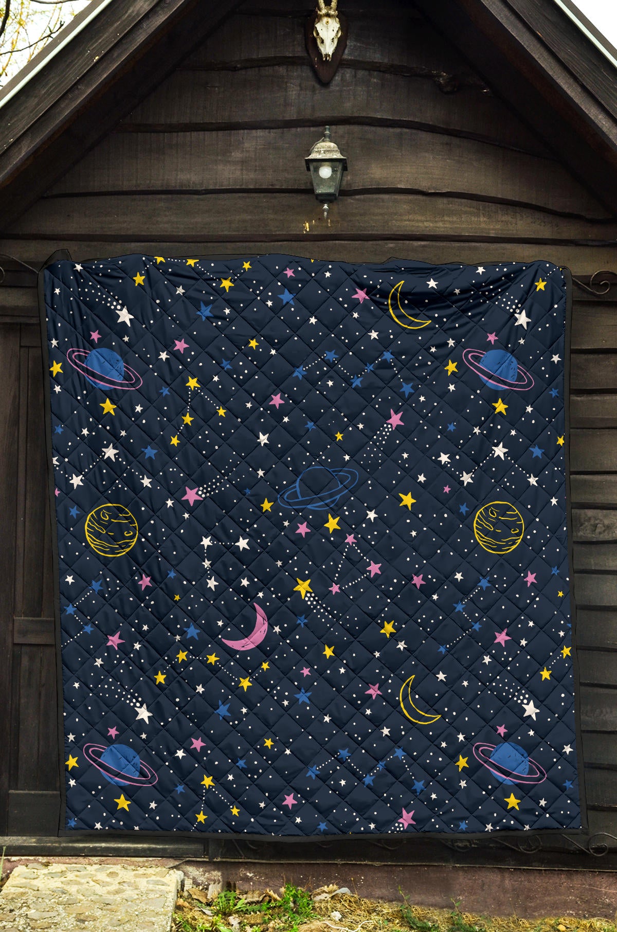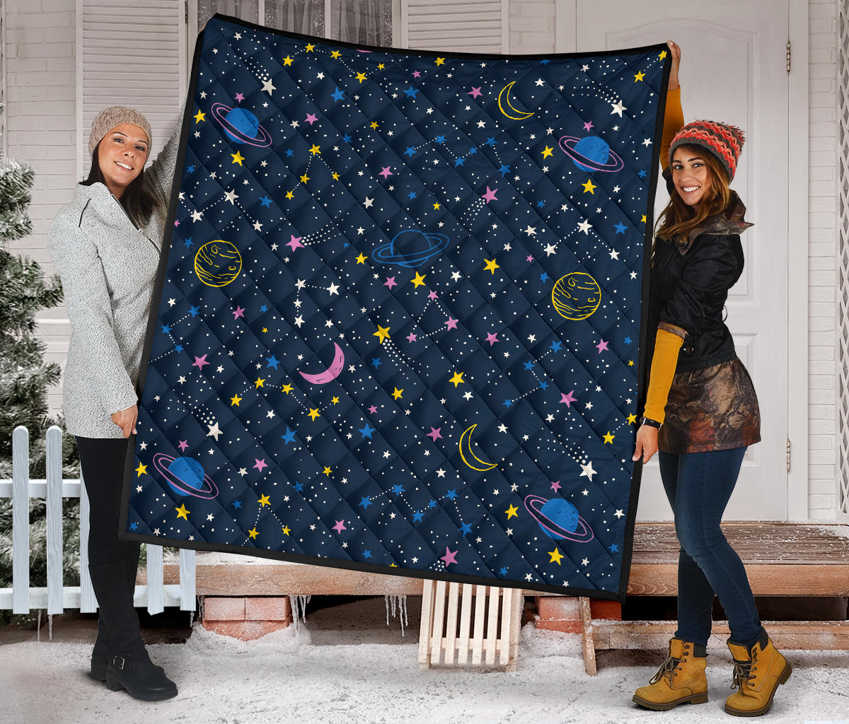 Space Pattern With Planets, Comets, Constellations And Stars Premium Quilt is a uniqued design and limited item. It made to order, hand printed, and sewn with love in our factory.