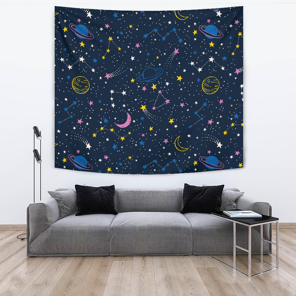 space pattern with planets, comets, constellations and stars Tapestry is a uniqued design and limited item. It made to order, hand printed, and sewn with love in our factory.