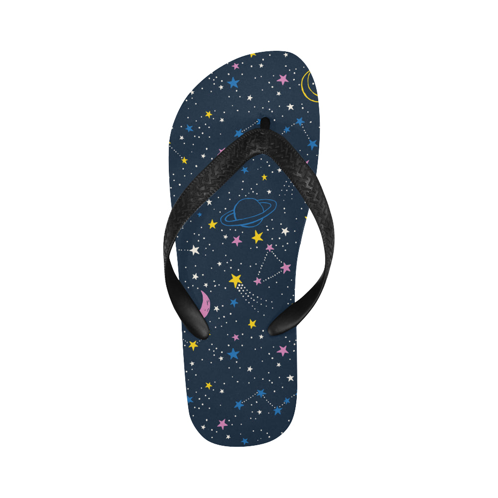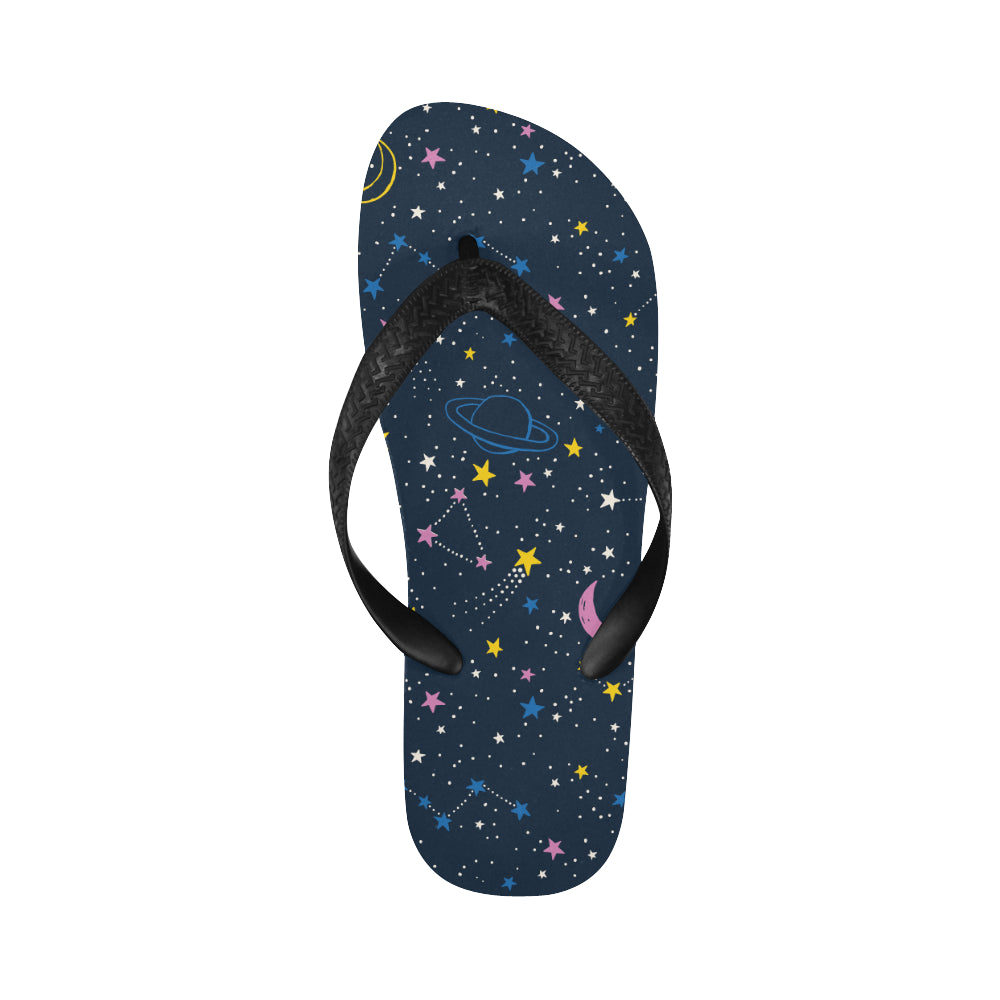 space pattern with planets, comets, constellations Unisex Flip Flops is a uniqued design and limited item. It made to order, hand printed, and sewn with love in our factory.