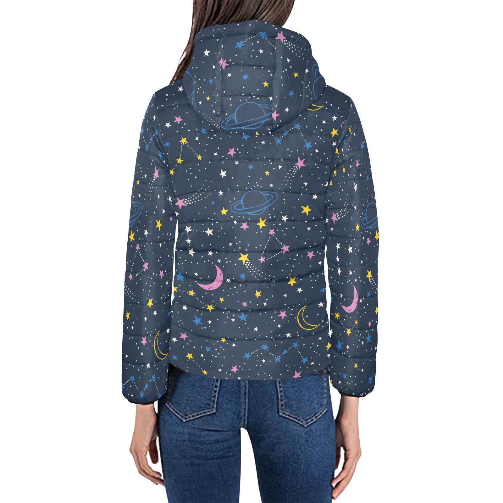 space pattern with planets, comets, constellations Women's Padded Hooded Jacket