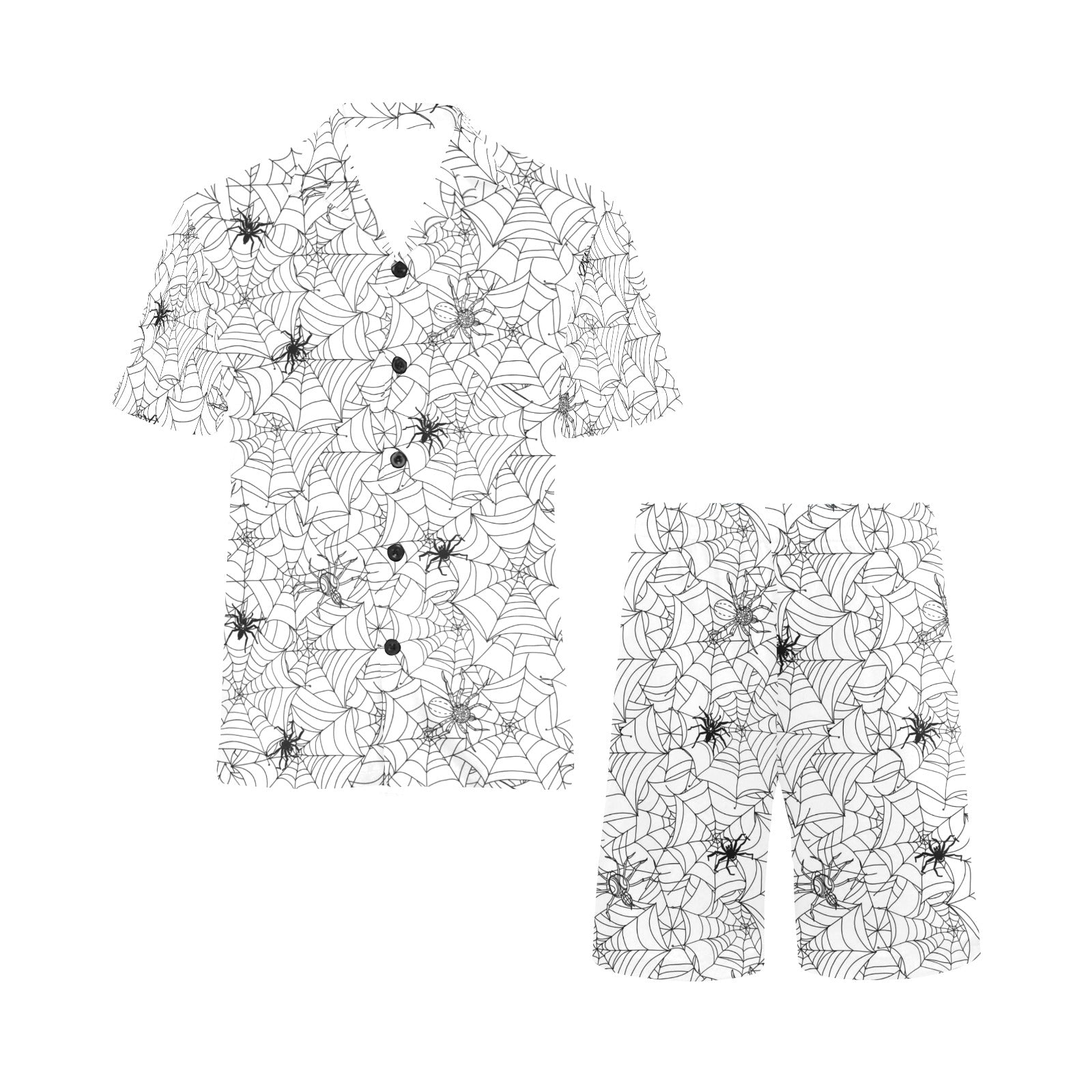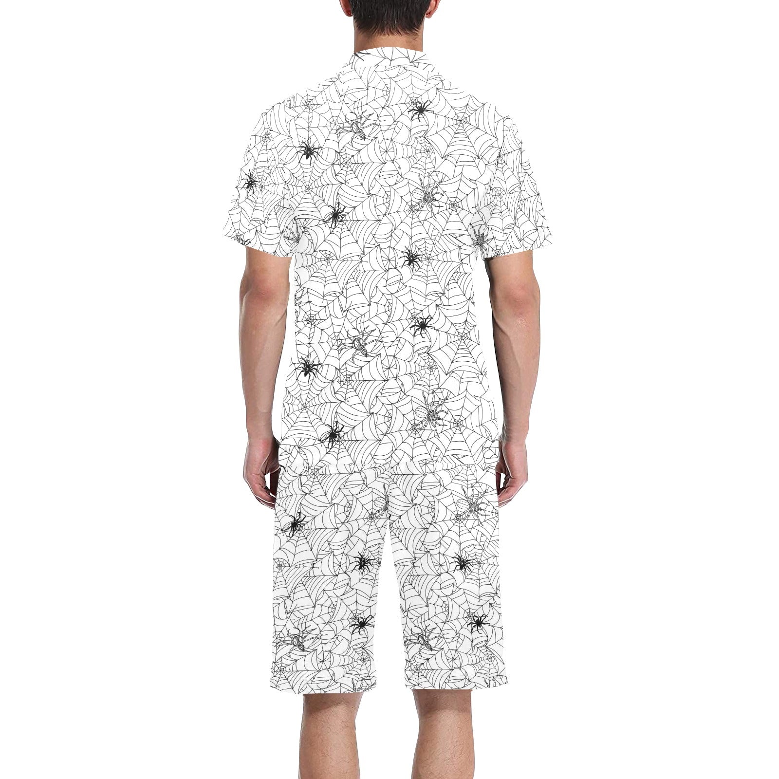 Spider web cobweb pattern Men's V-Neck Short Pajama Set