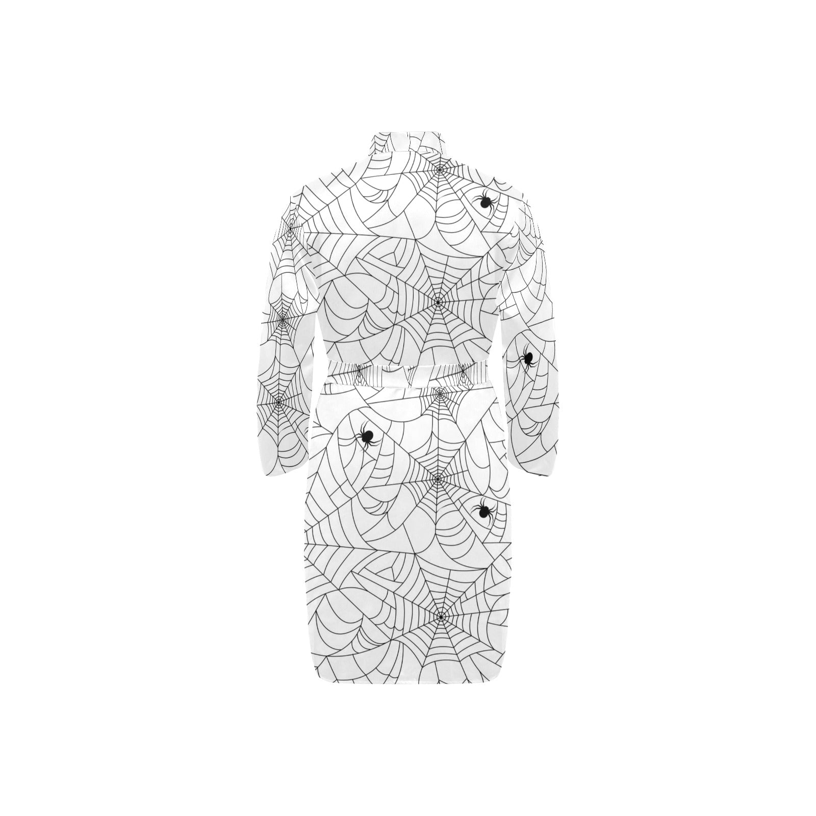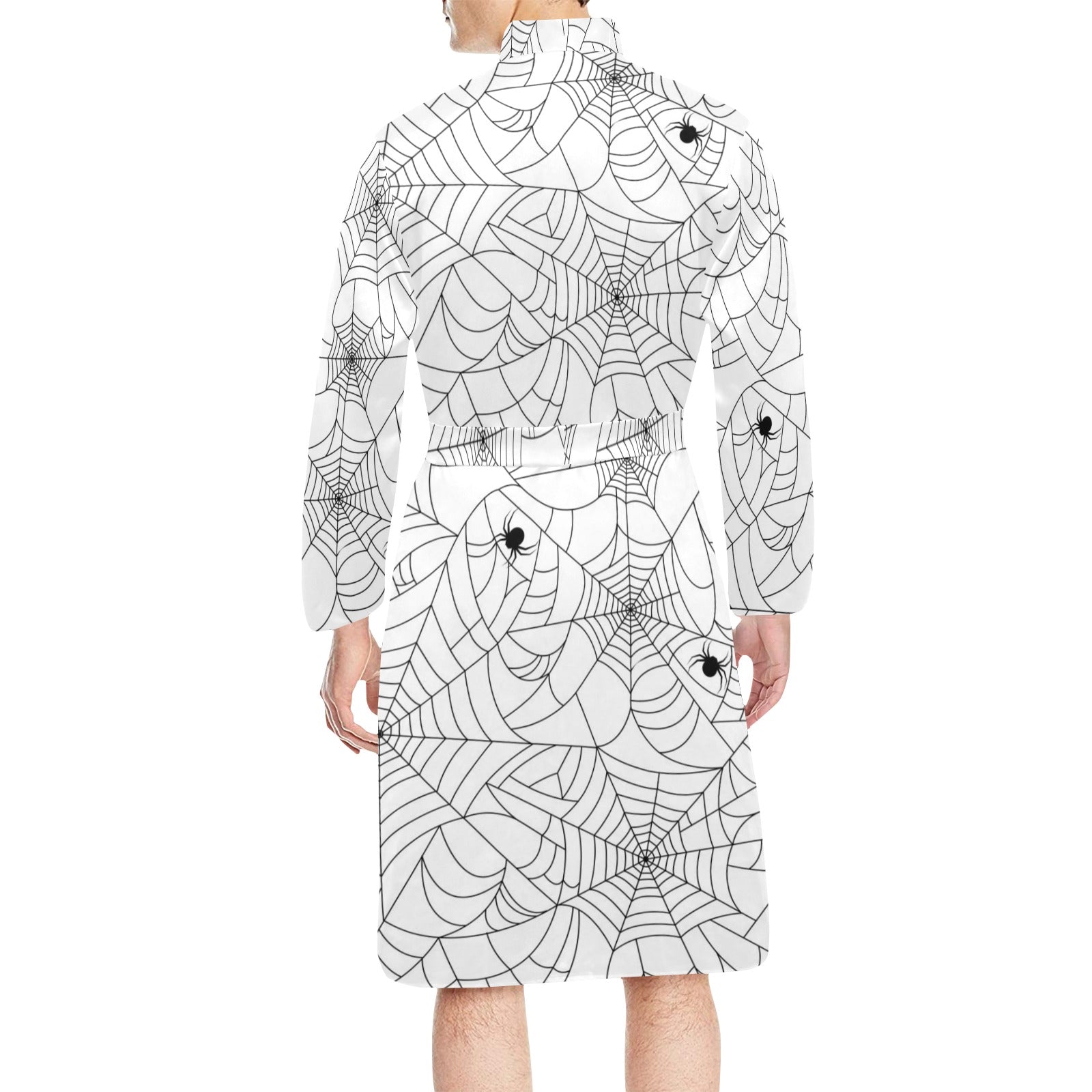 Spider web cobweb pattern white background Men's Long Sleeve Belted Night Robe