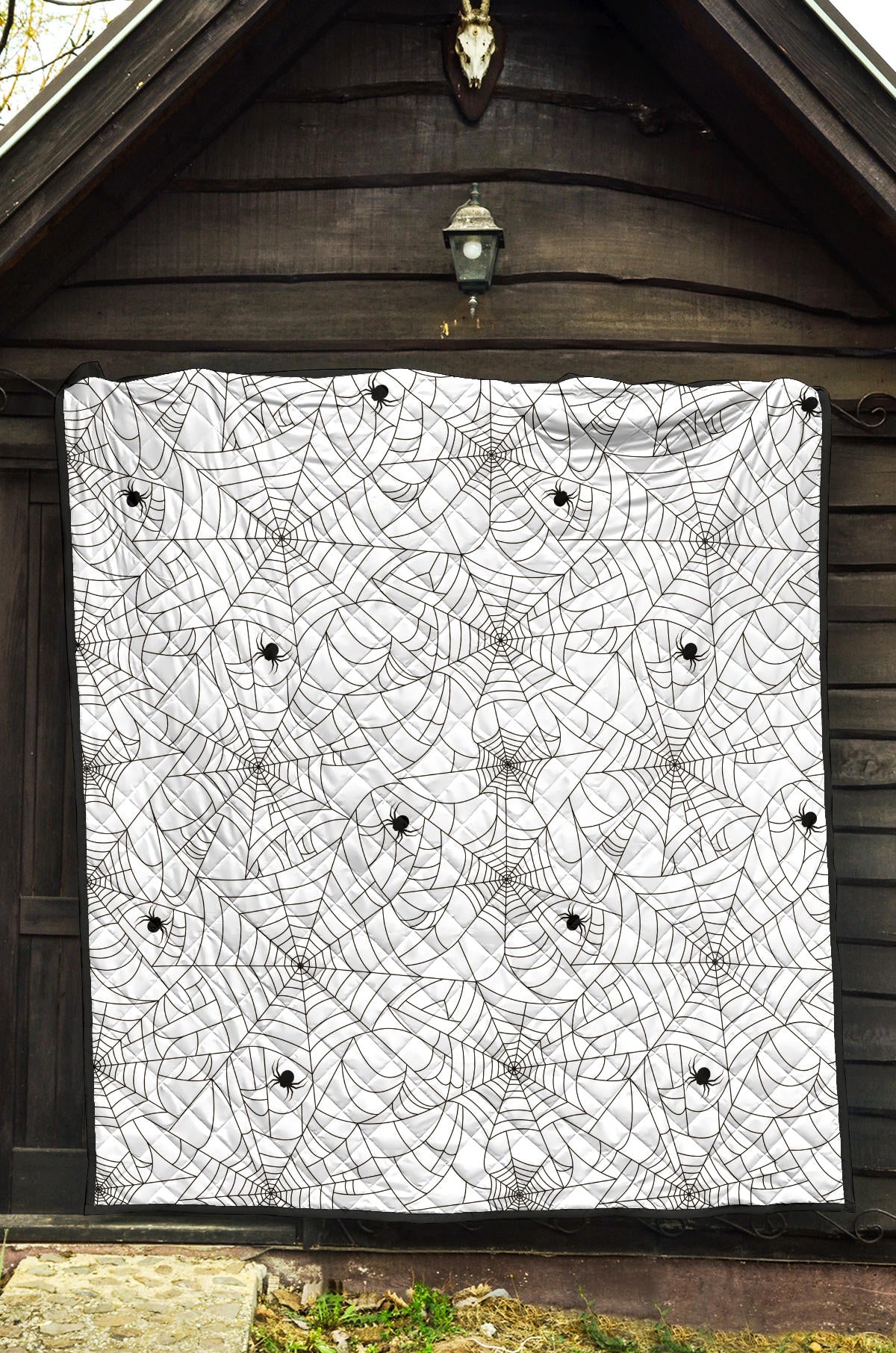Spider Web Cobweb Pattern White Background Premium Quilt is a uniqued design and limited item. It made to order, hand printed, and sewn with love in our factory.