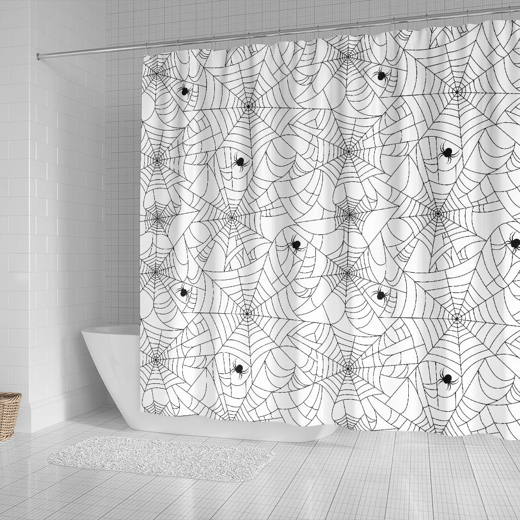 Spider web cobweb pattern white background Shower Curtain is a uniqued design and limited item. It made to order, hand printed, and sewn with love in our factory.