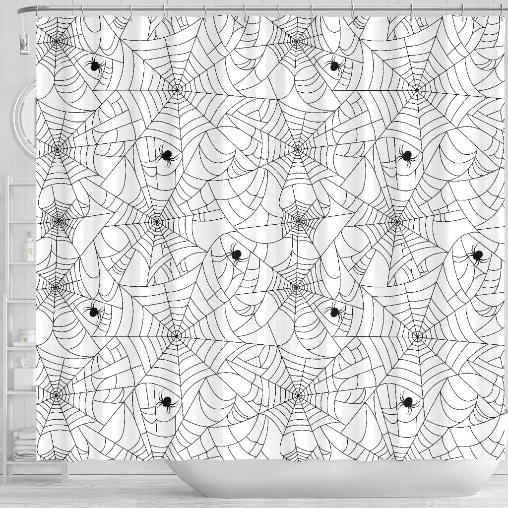 Spider Web Cobweb Pattern White Background Shower Curtain Fulfilled In US