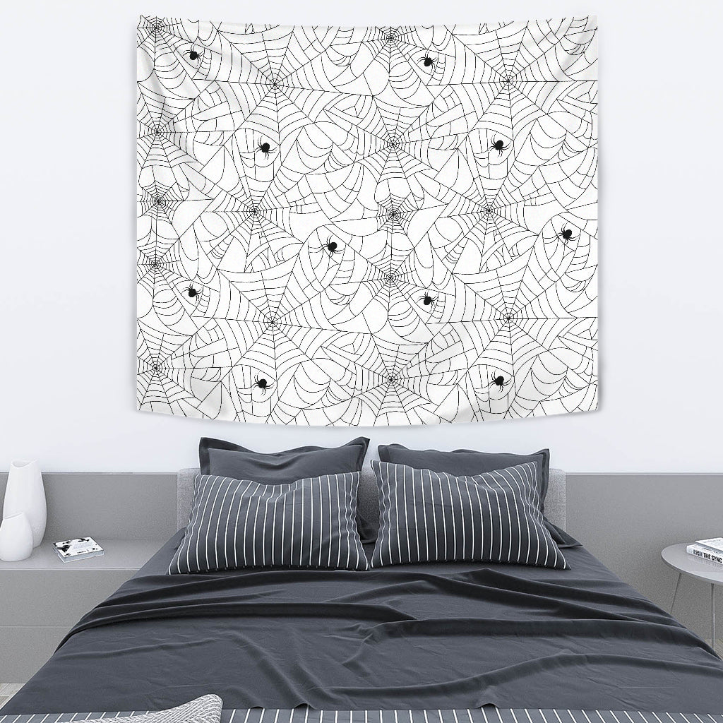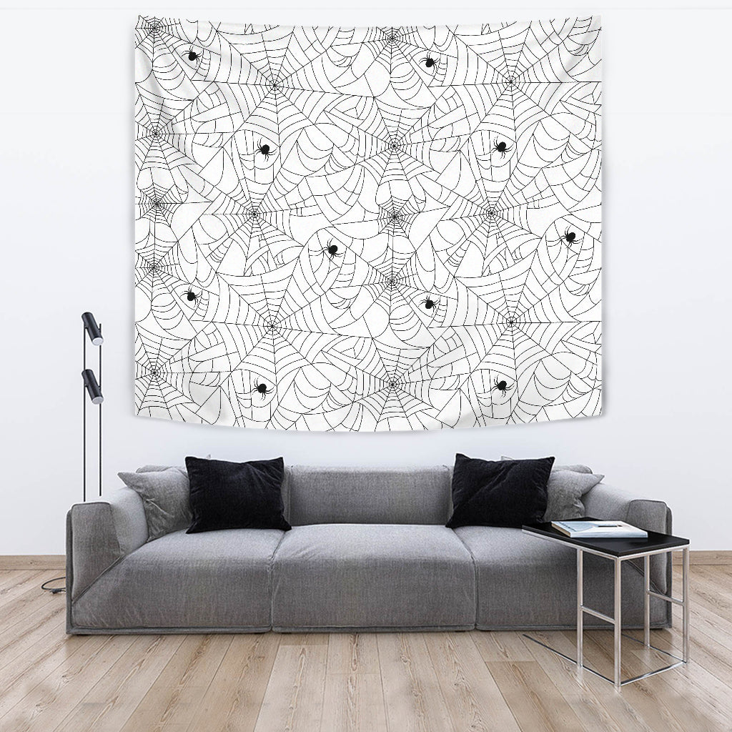 Spider web cobweb pattern white background Tapestry is a uniqued design and limited item. It made to order, hand printed, and sewn with love in our factory.