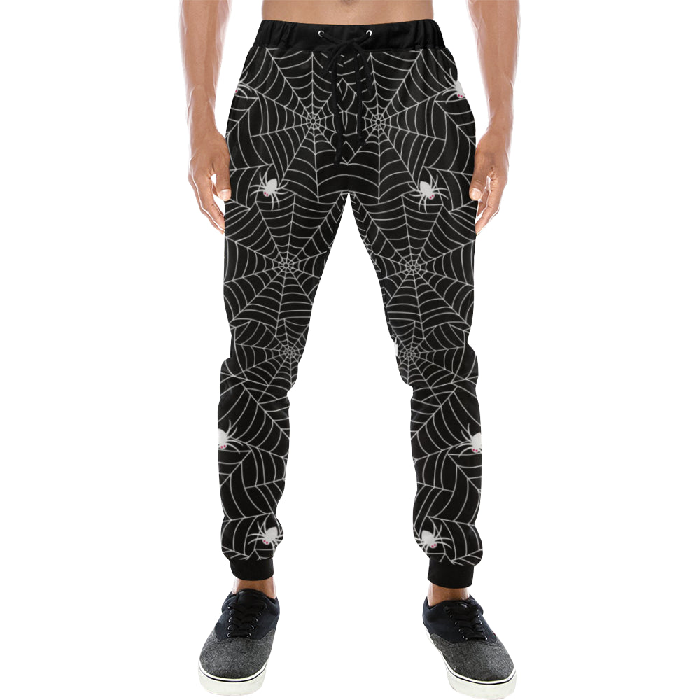 Spider web design pattern Black background white c Unisex Casual Sweatpants