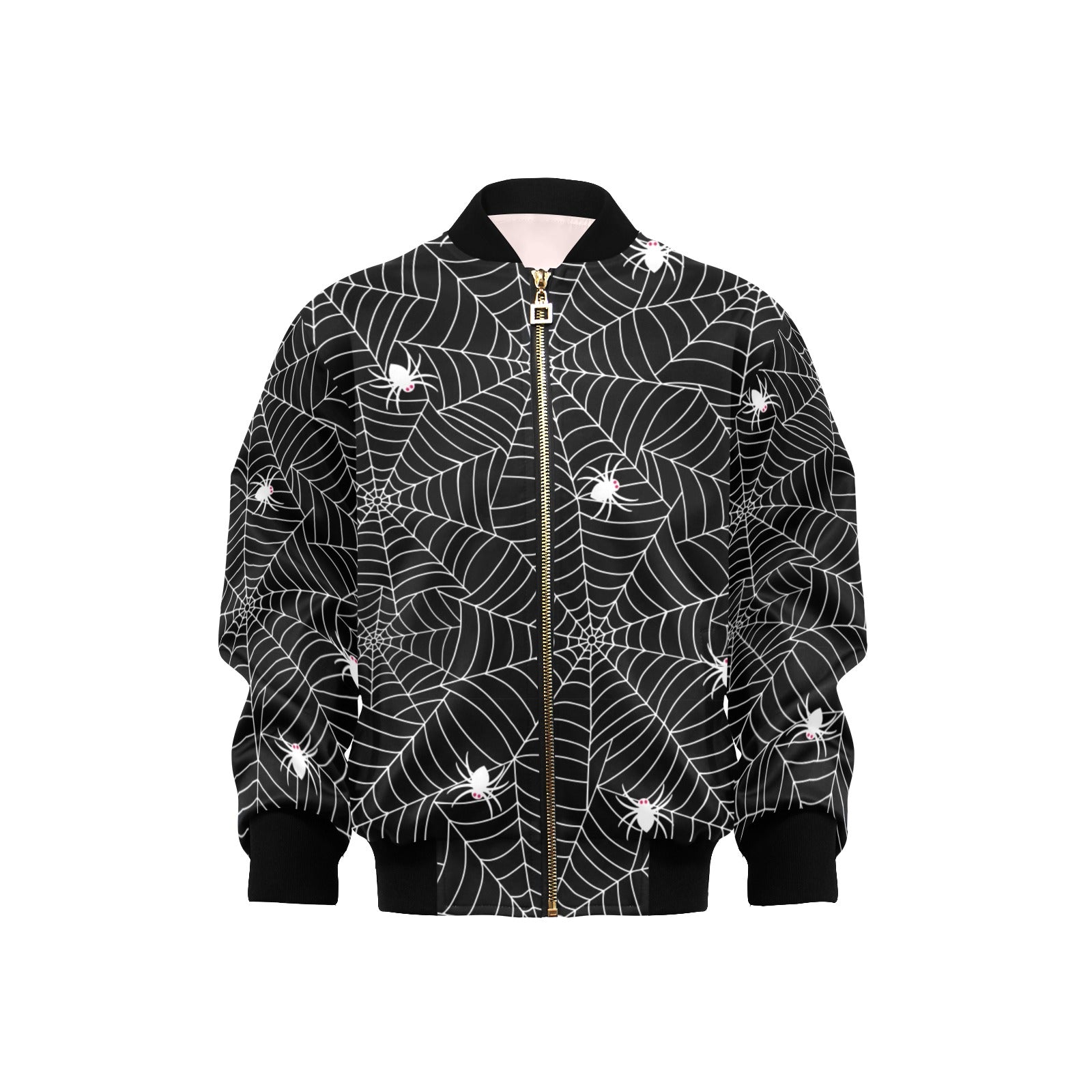 Spider web design pattern Black background white c Kids' Boys' Girls' Bomber Jacket