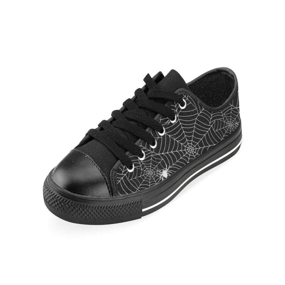 Spider web design pattern Black background white c Men's Low Top Canvas Shoes Black