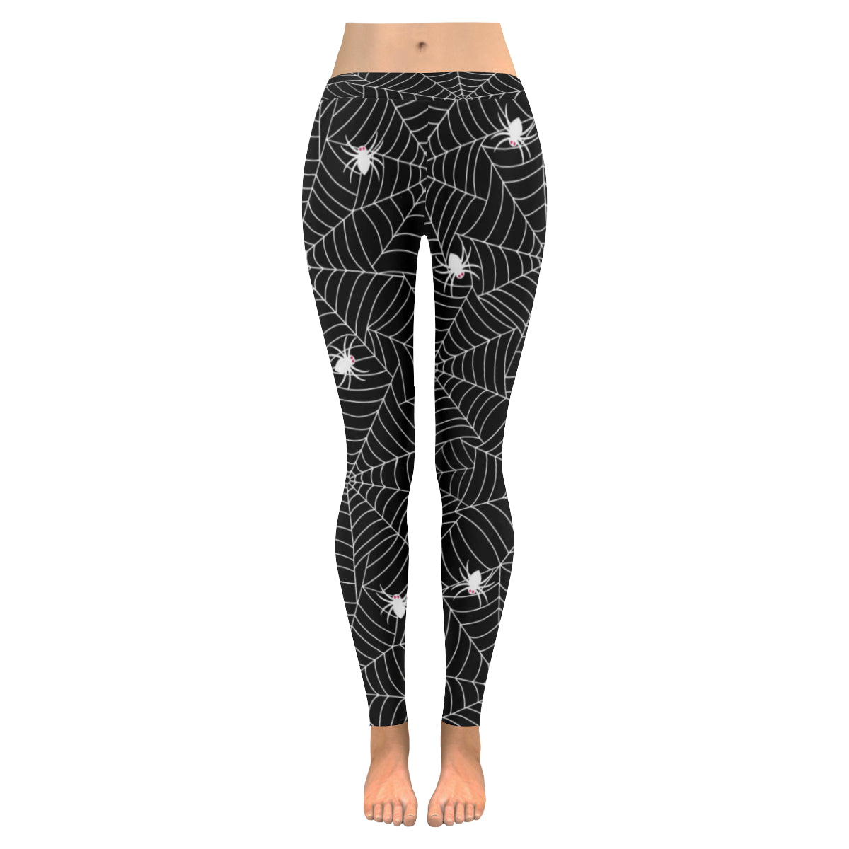 Spider web design pattern Black background white c Women's Legging Fulfilled In US