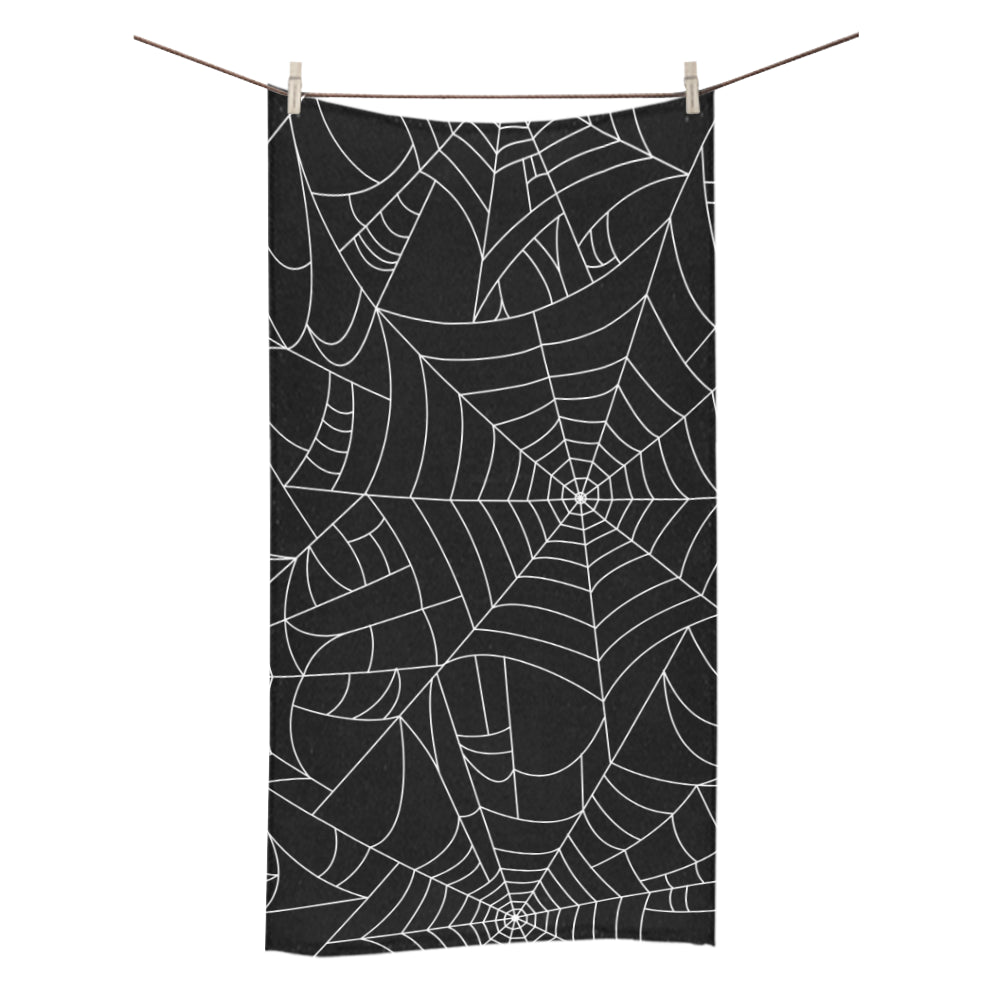 Spider web pattern Black background white cobweb Bath Towel 30"x56" is a uniqued design and limited item. It made to order, hand printed, and sewn with love in our factory.
