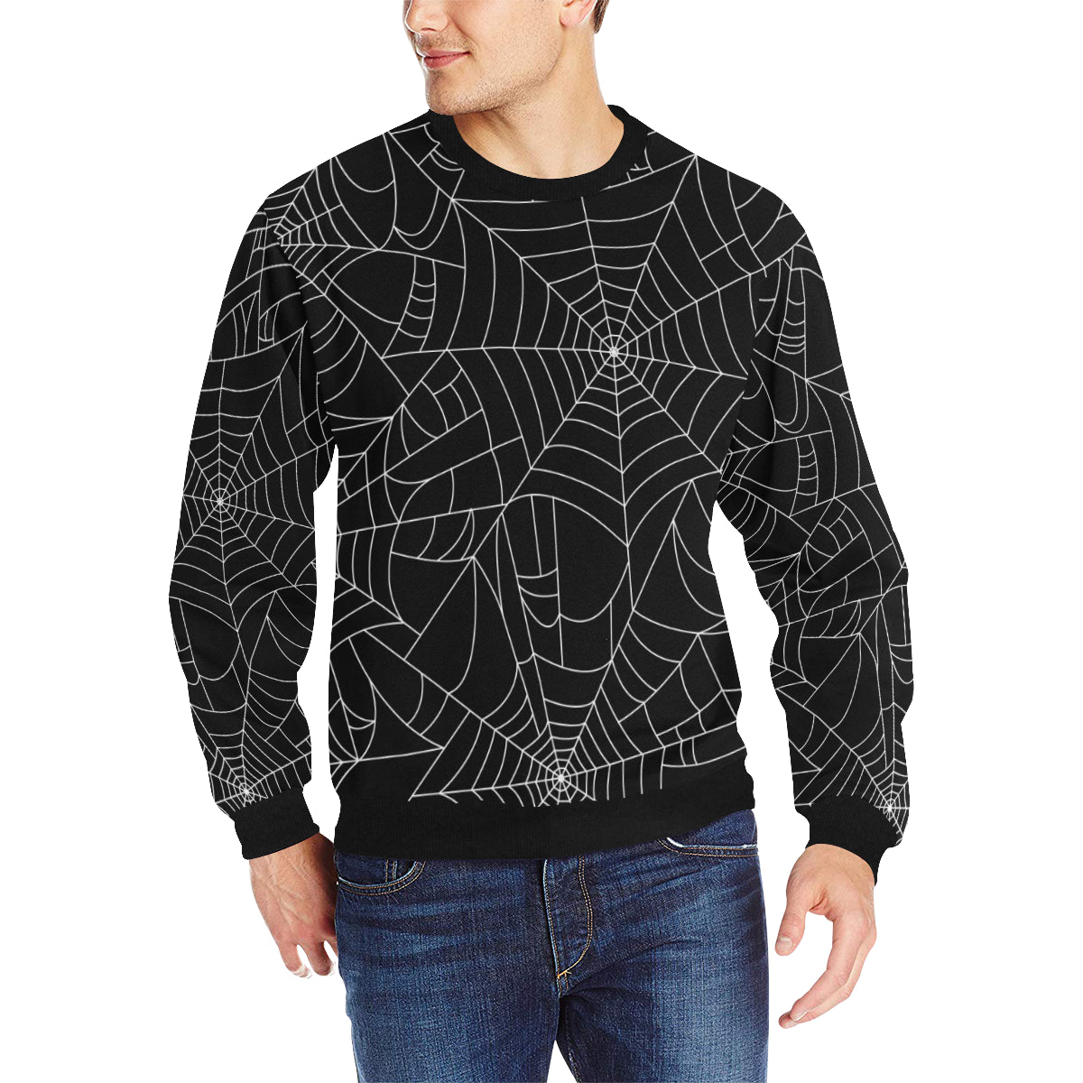 Spider web pattern Black background white cobweb Men's Crew Neck Sweatshirt
