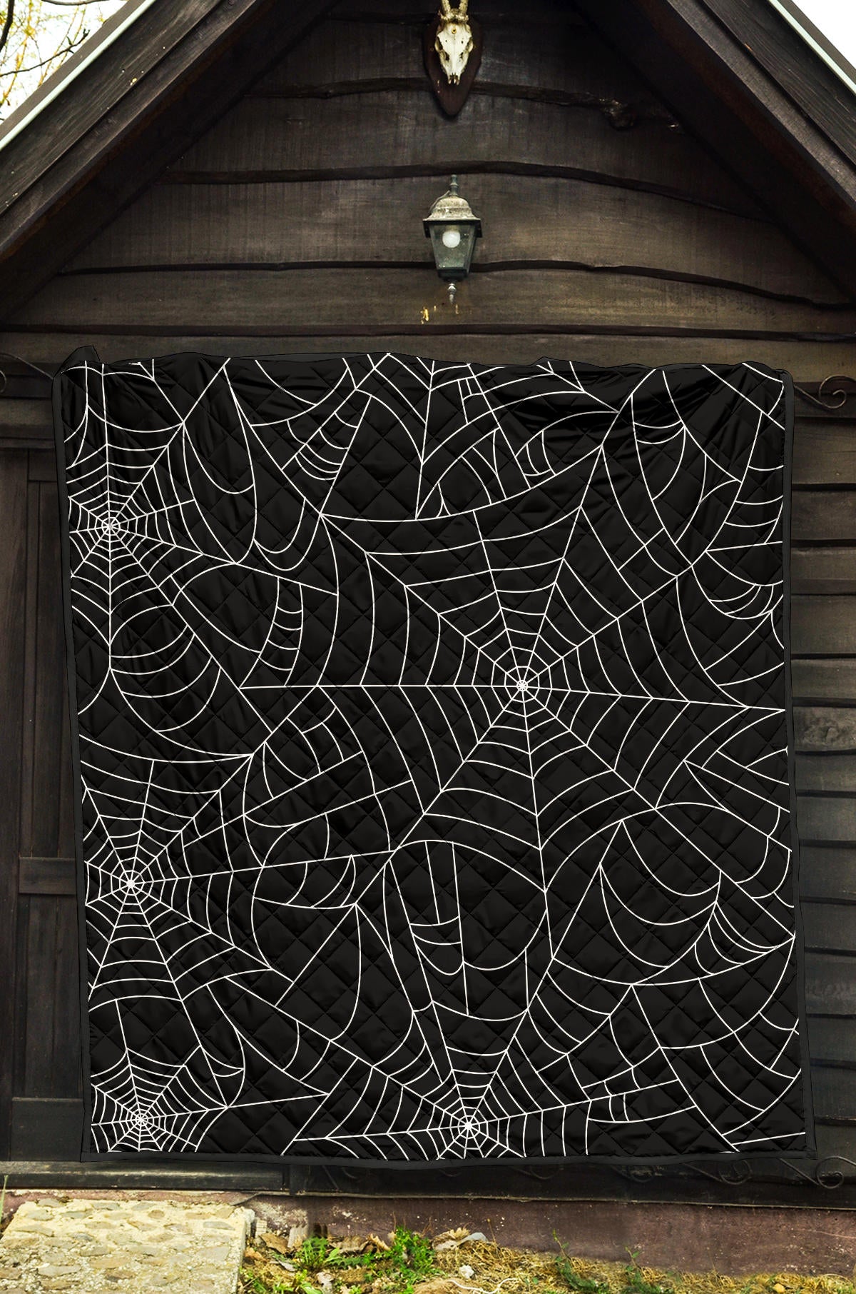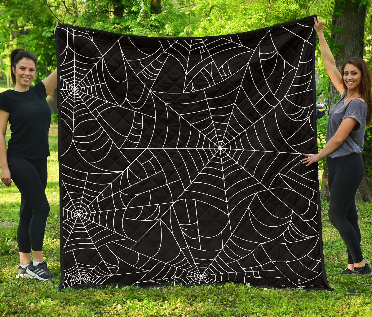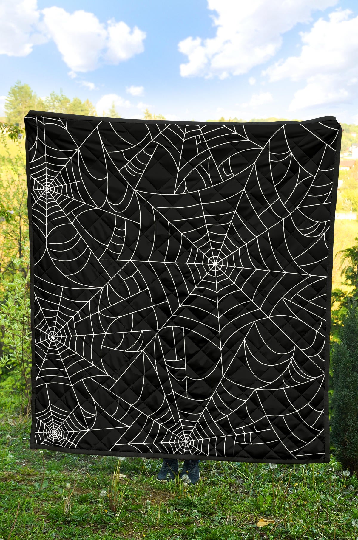 Spider Web Pattern Black Background White Cobweb Premium Quilt is a uniqued design and limited item. It made to order, hand printed, and sewn with love in our factory.