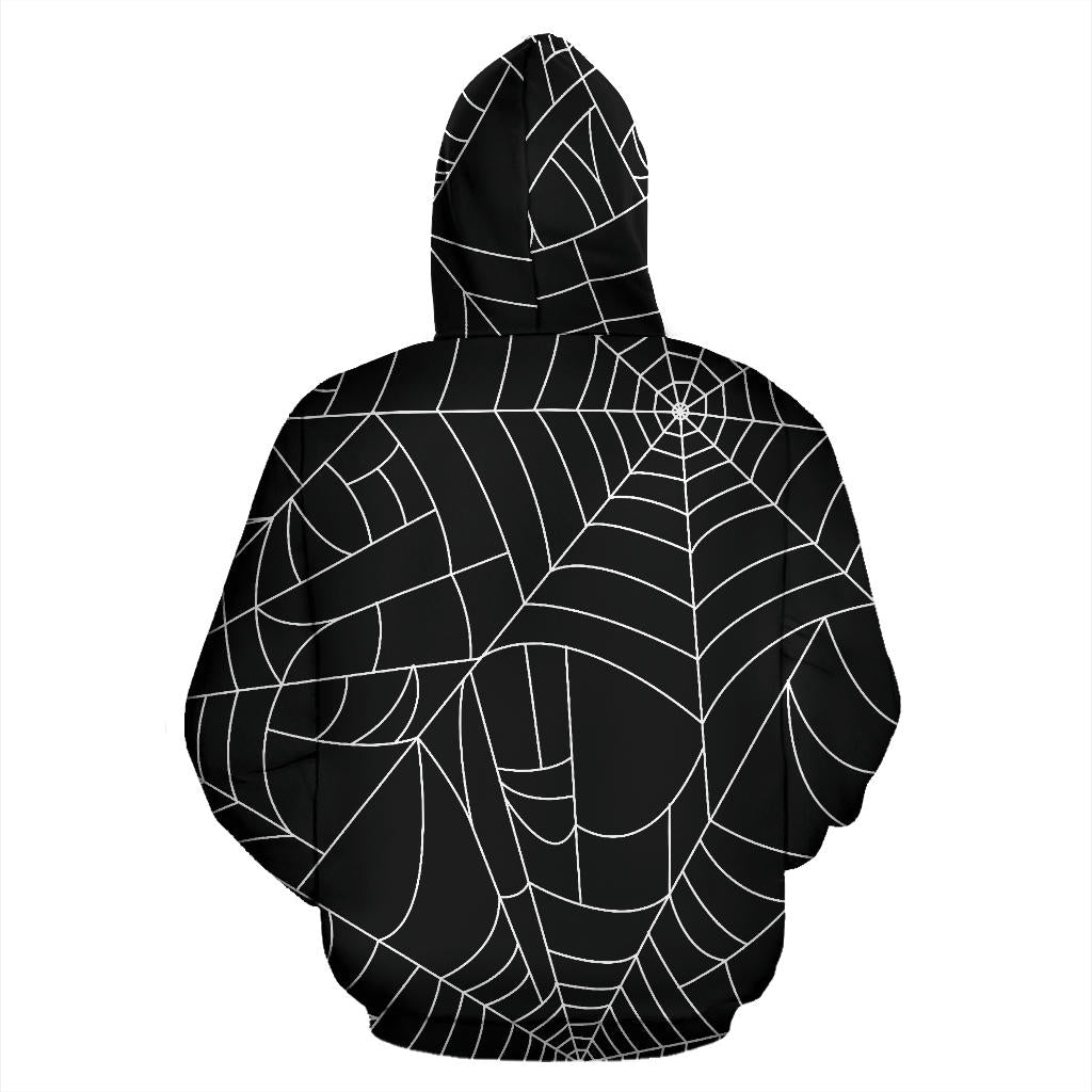 Spider Web Pattern Black Background White Cobweb Men Women Pullover Hoodie