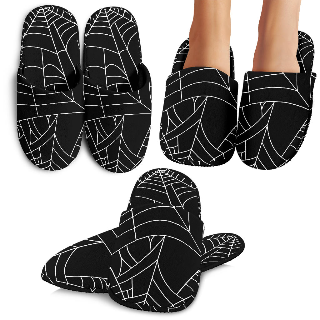 Spider Web Pattern Black Background White Cobweb Slippers