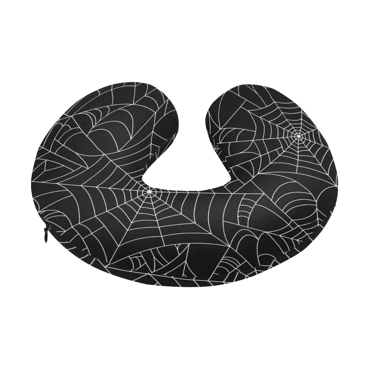 Spider web pattern Black background white cobweb U-Shaped Travel Neck Pillow