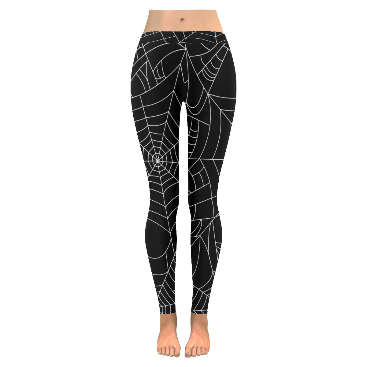 Spider web pattern Black background white cobweb Women's Legging Fulfilled In US