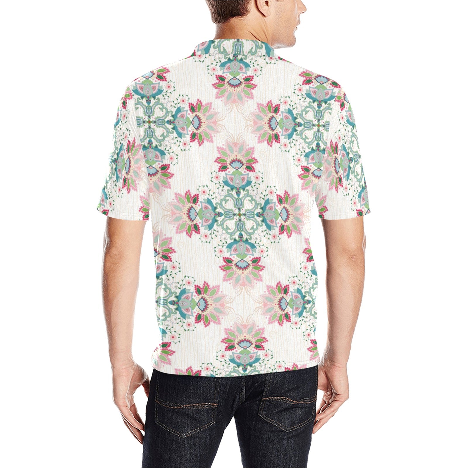 Square floral indian flower pattern Men's All Over Print Polo Shirt