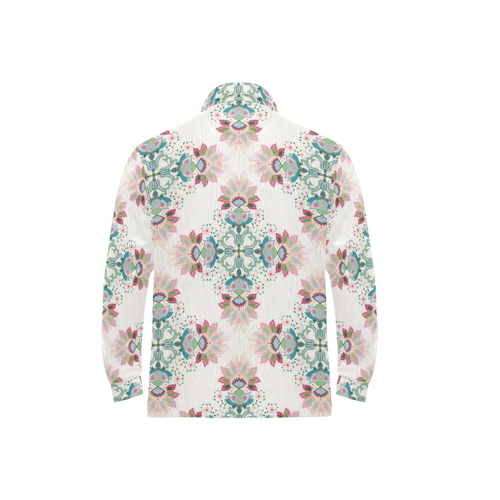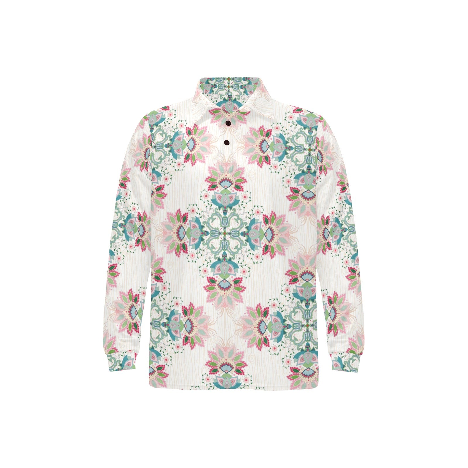 Square floral indian flower pattern Men's Long Sleeve Polo Shirt