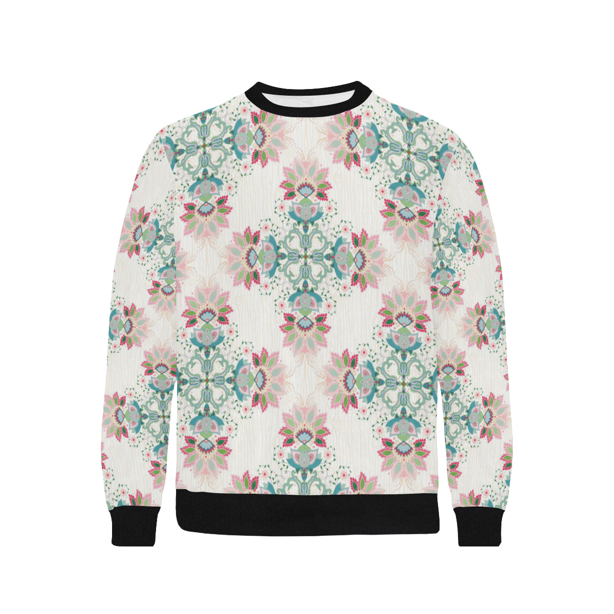 Square floral indian flower pattern Men's Crew Neck Sweatshirt