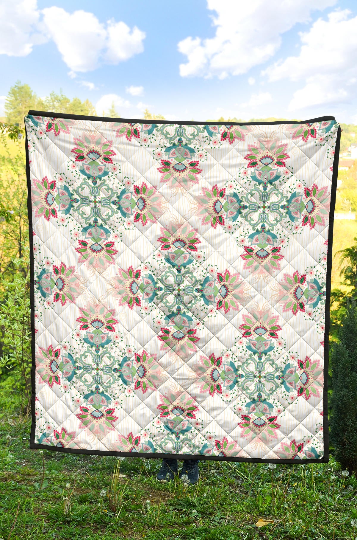 Square Floral Indian Flower Pattern Premium Quilt is a uniqued design and limited item. It made to order, hand printed, and sewn with love in our factory.