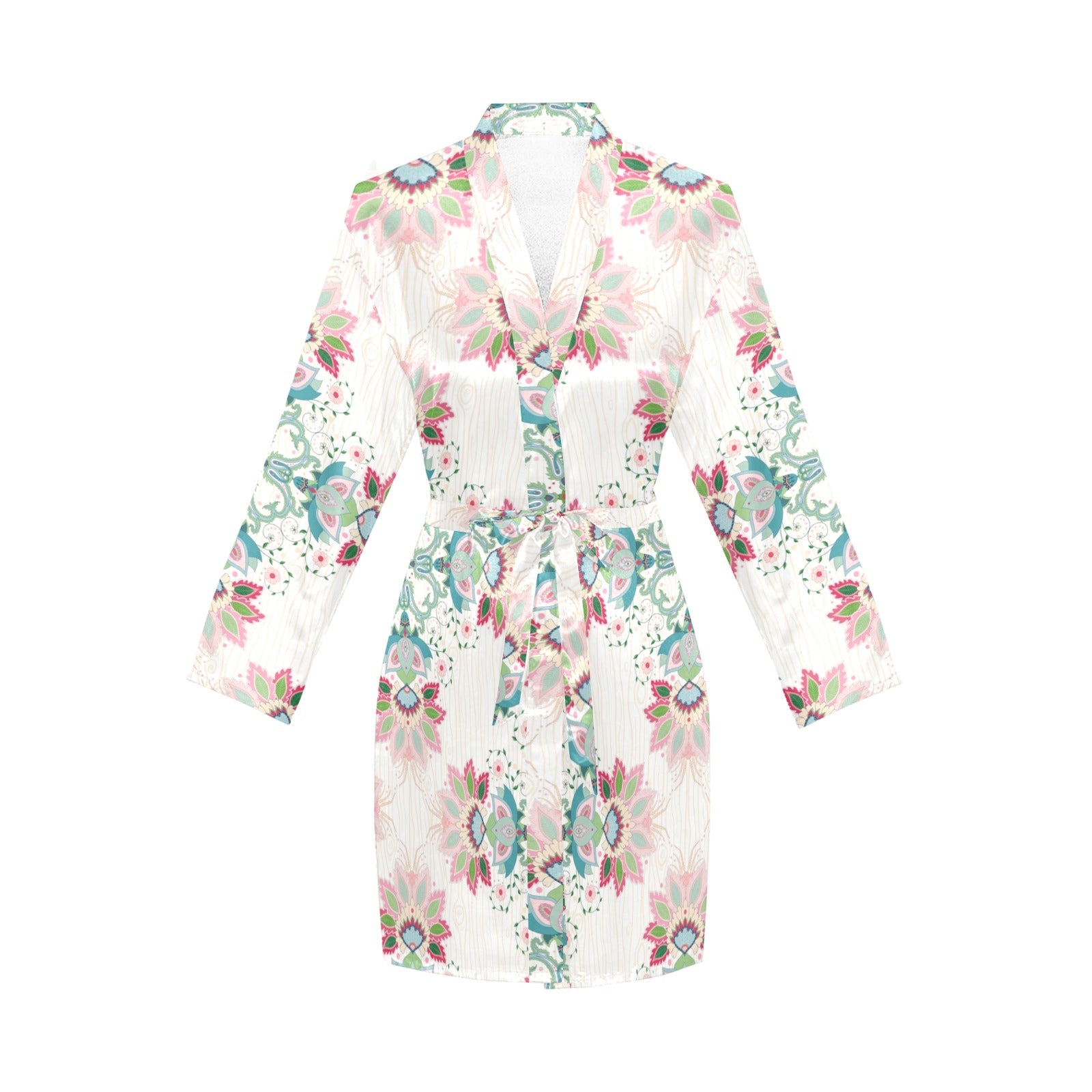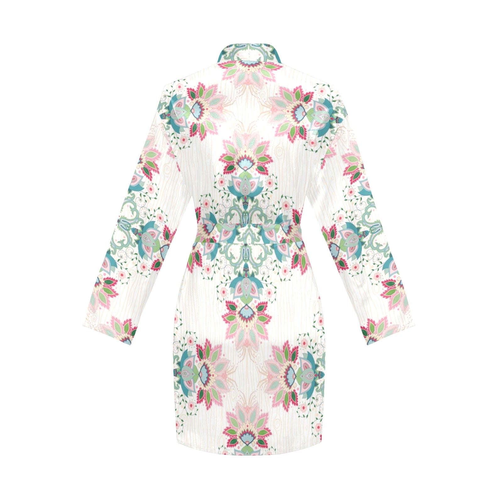 Square floral indian flower pattern Women's Long Sleeve Belted Night Robe