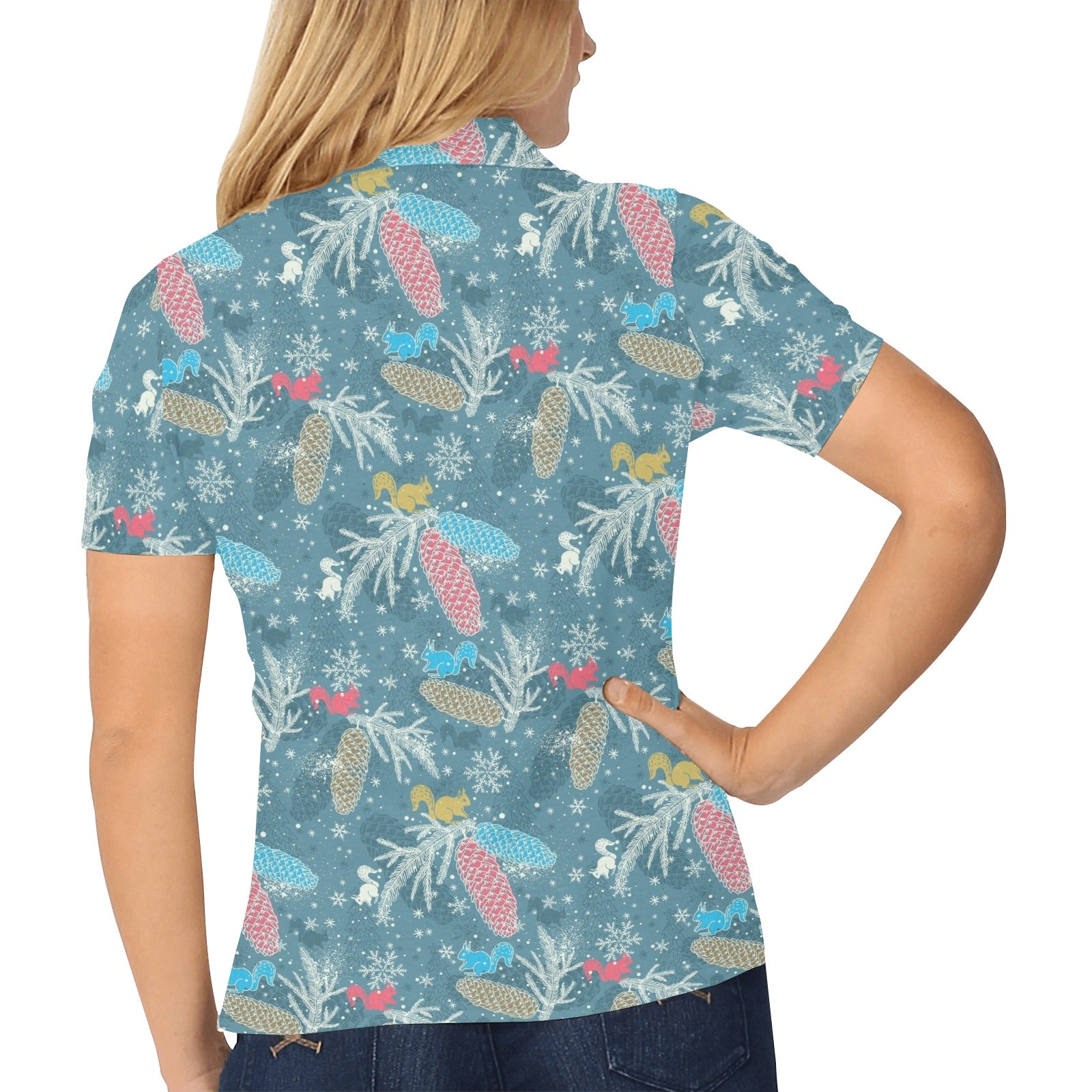 Squirrel Pattern Print Design 01 Women's All Over Print Polo Shirt