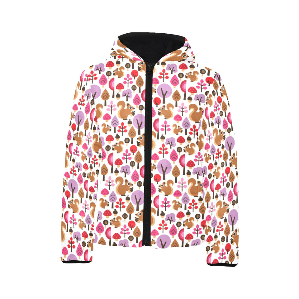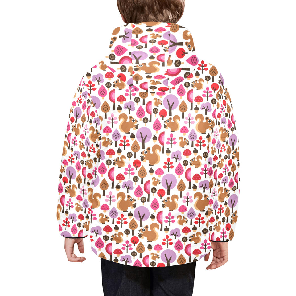 Squirrel Pattern Print Design 02 Kids' Boys' Girls' Padded Hooded Jacket