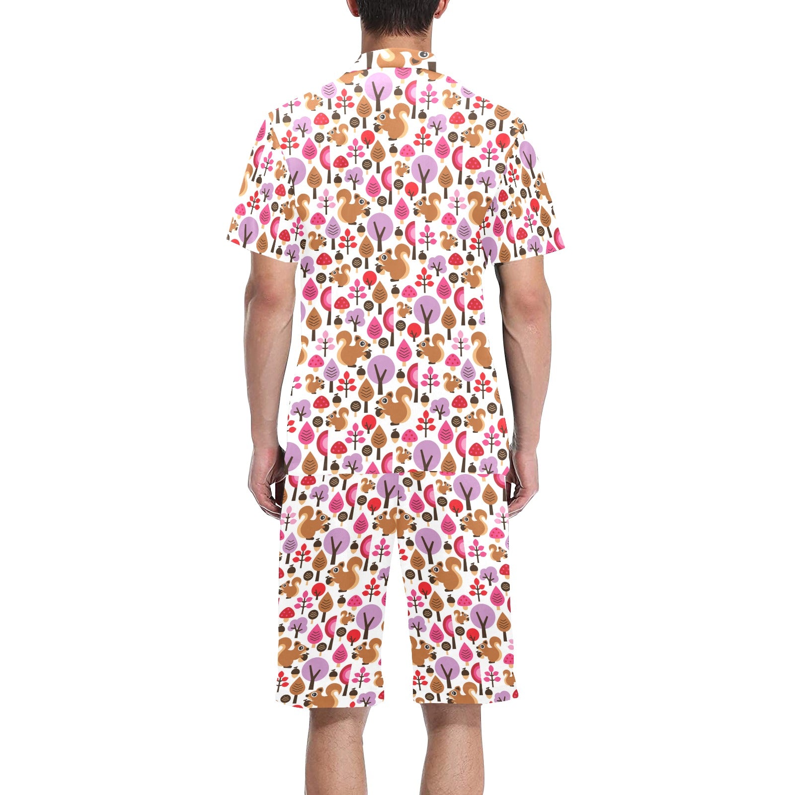 Squirrel Pattern Print Design 02 Men's V-Neck Short Pajama Set