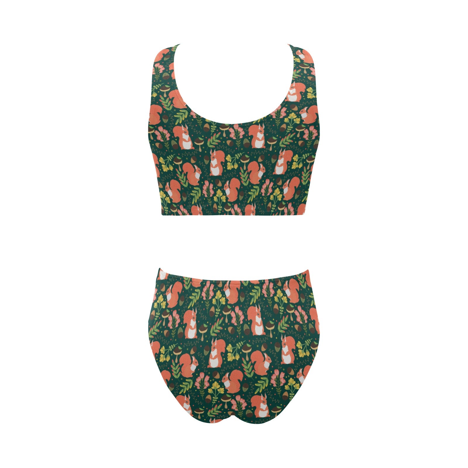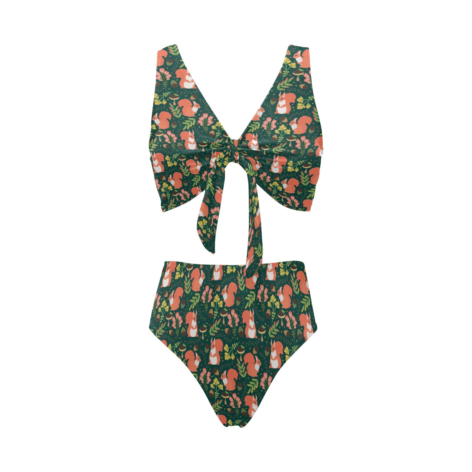 Squirrel Pattern Print Design 03 Chest Bowknot High Waisted Bikini Swimsuit