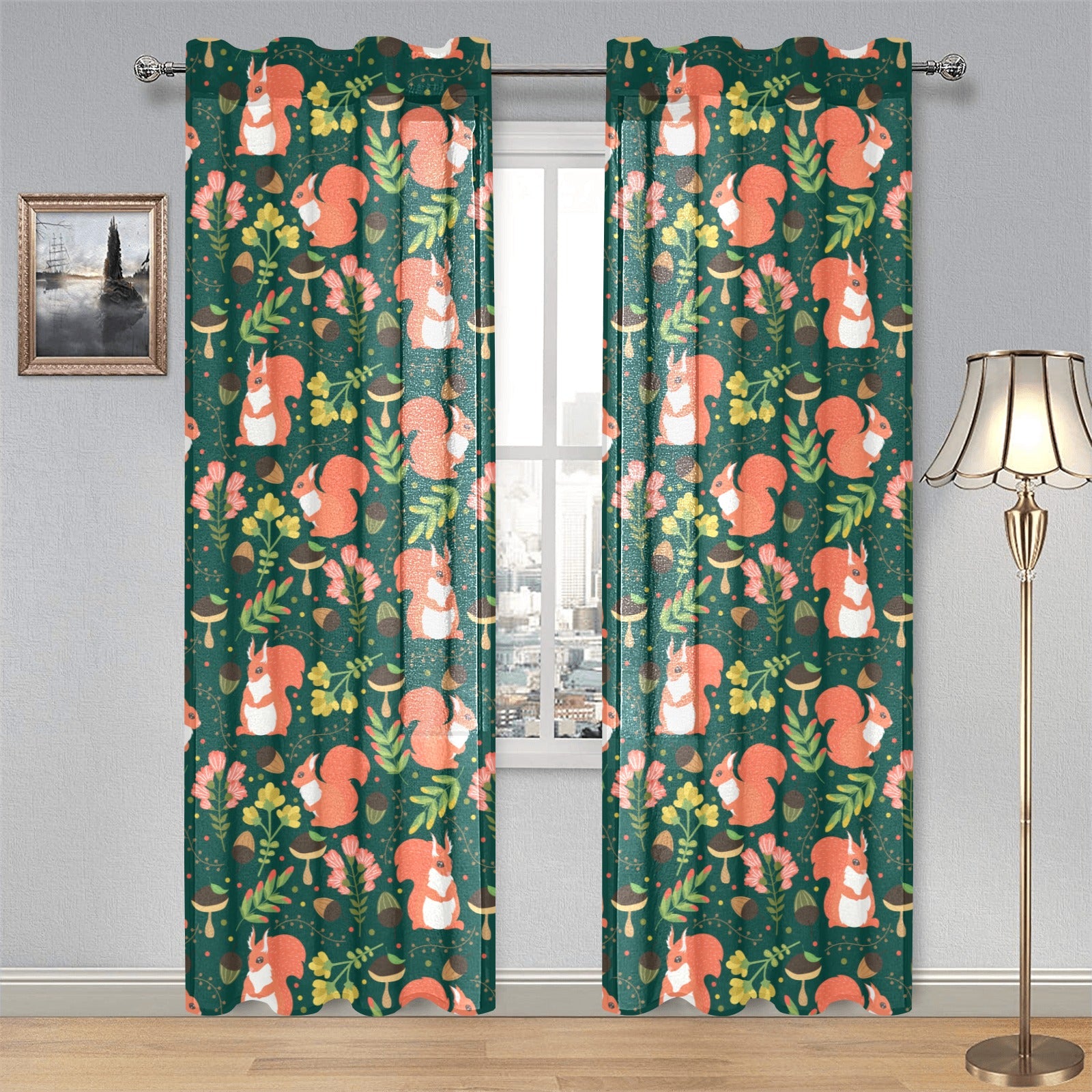 Squirrel Pattern Print Design 03 Gauze Curtain