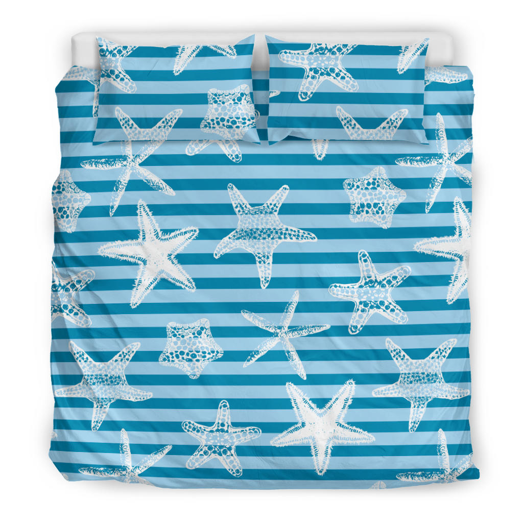 Starfish blue blackground Bedding Set is a uniqued design and limited item. It made to order, hand printed, and sewn with love in our factory.