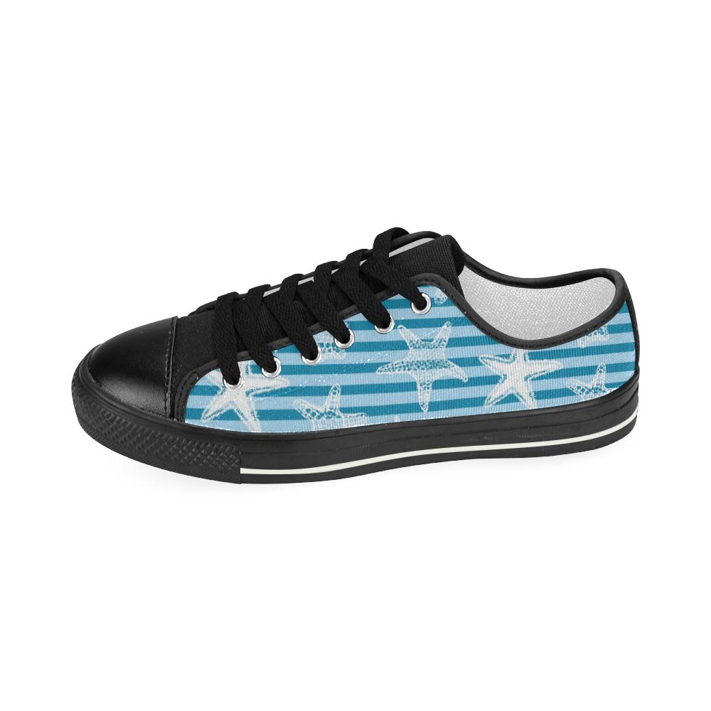 Starfish blue blackground Kids' Boys' Girls' Low Top Canvas Shoes Black