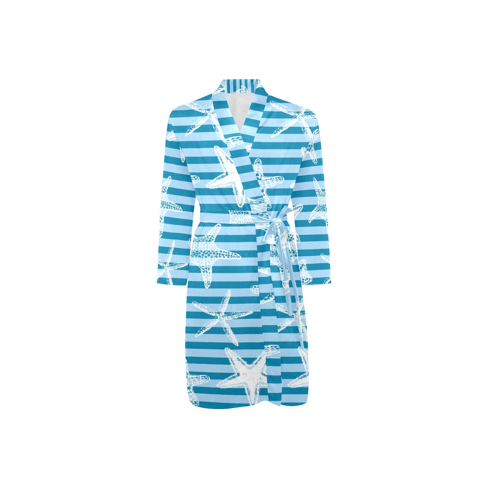 Starfish blue blackground Men's Long Sleeve Belted Night Robe