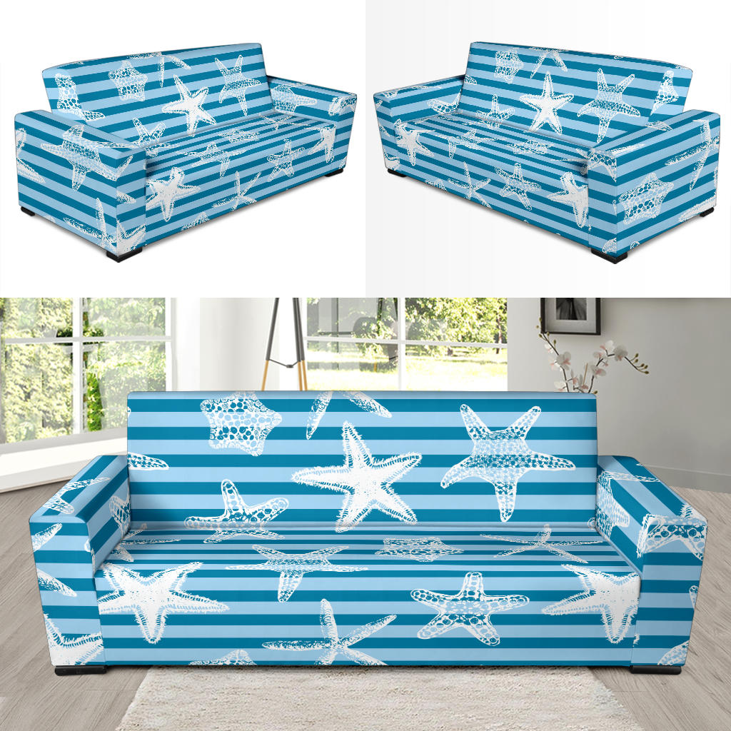 Starfish blue blackground Sofa Slipcover is a uniqued design and limited item. It made to order, hand printed, and sewn with love in our factory.