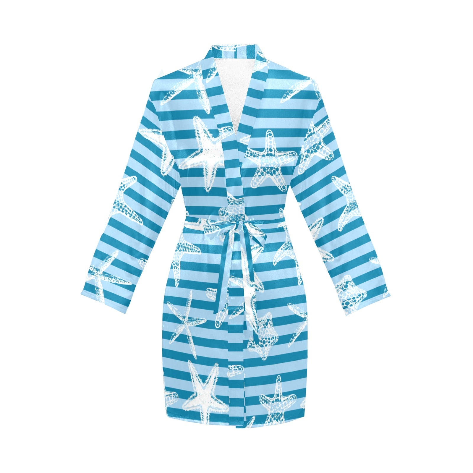 Starfish blue blackground Women's Long Sleeve Belted Night Robe