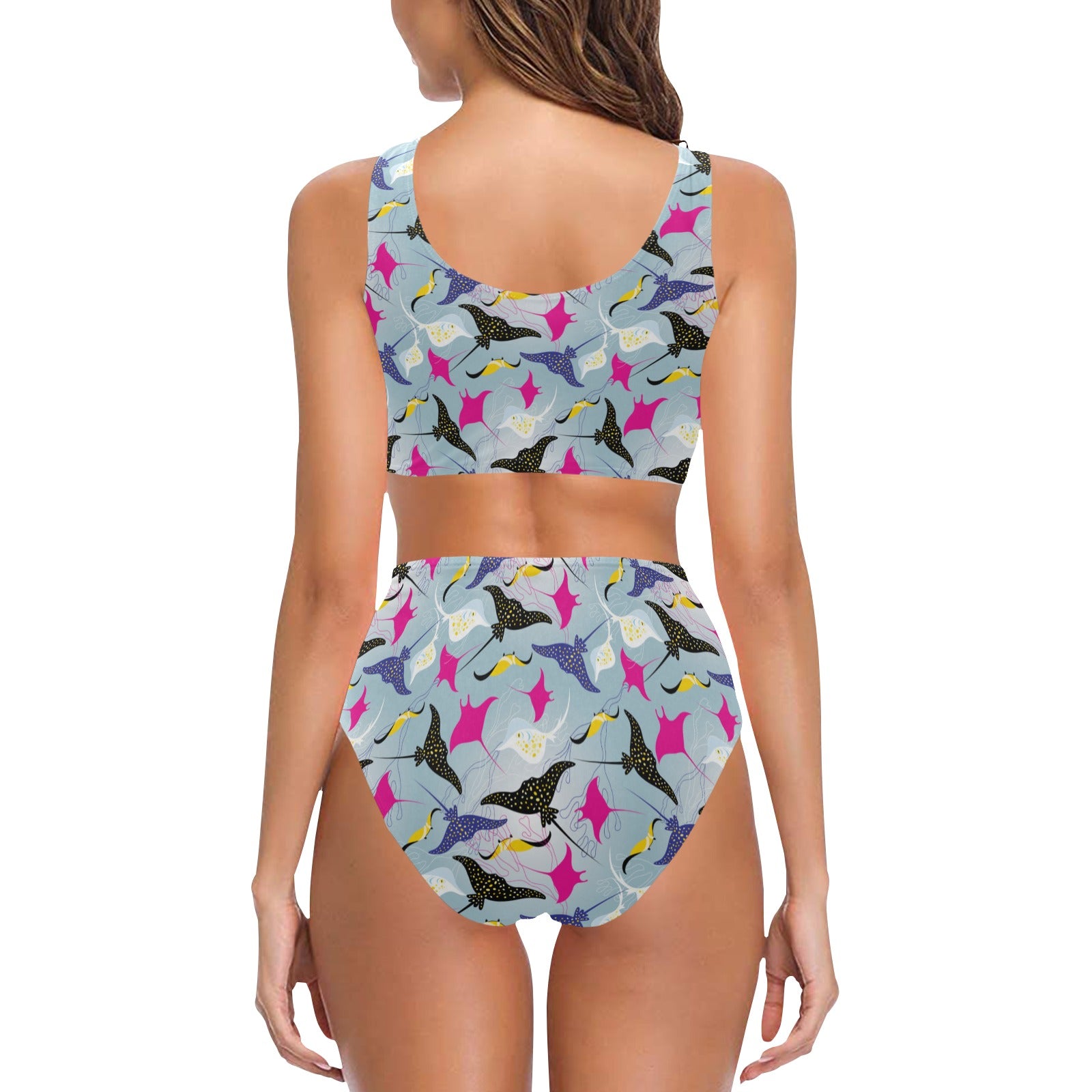Stingray Pattern Print Design 01 Chest Bowknot High Waisted Bikini Swimsuit