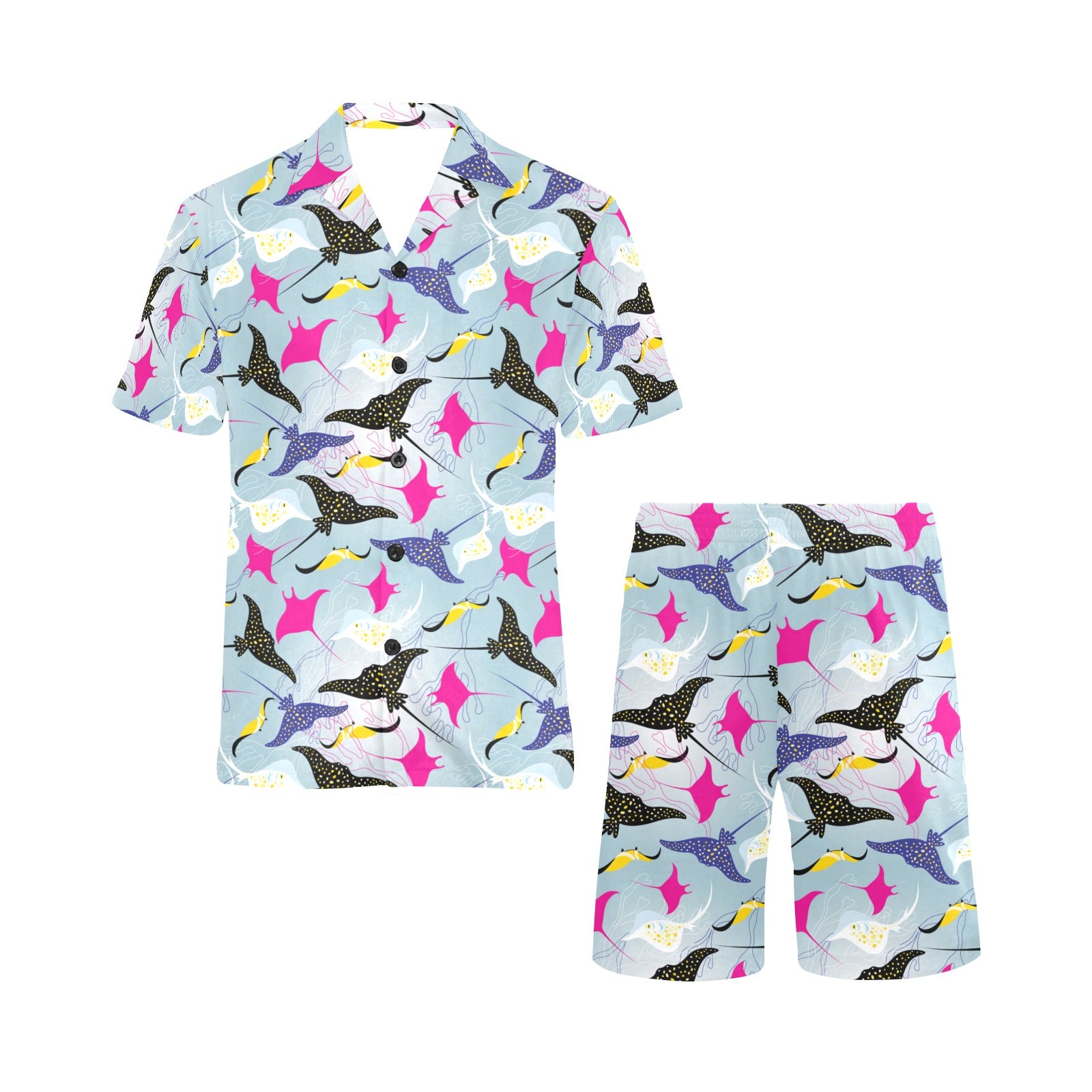 Stingray Pattern Print Design 01 Men's V-Neck Short Pajama Set