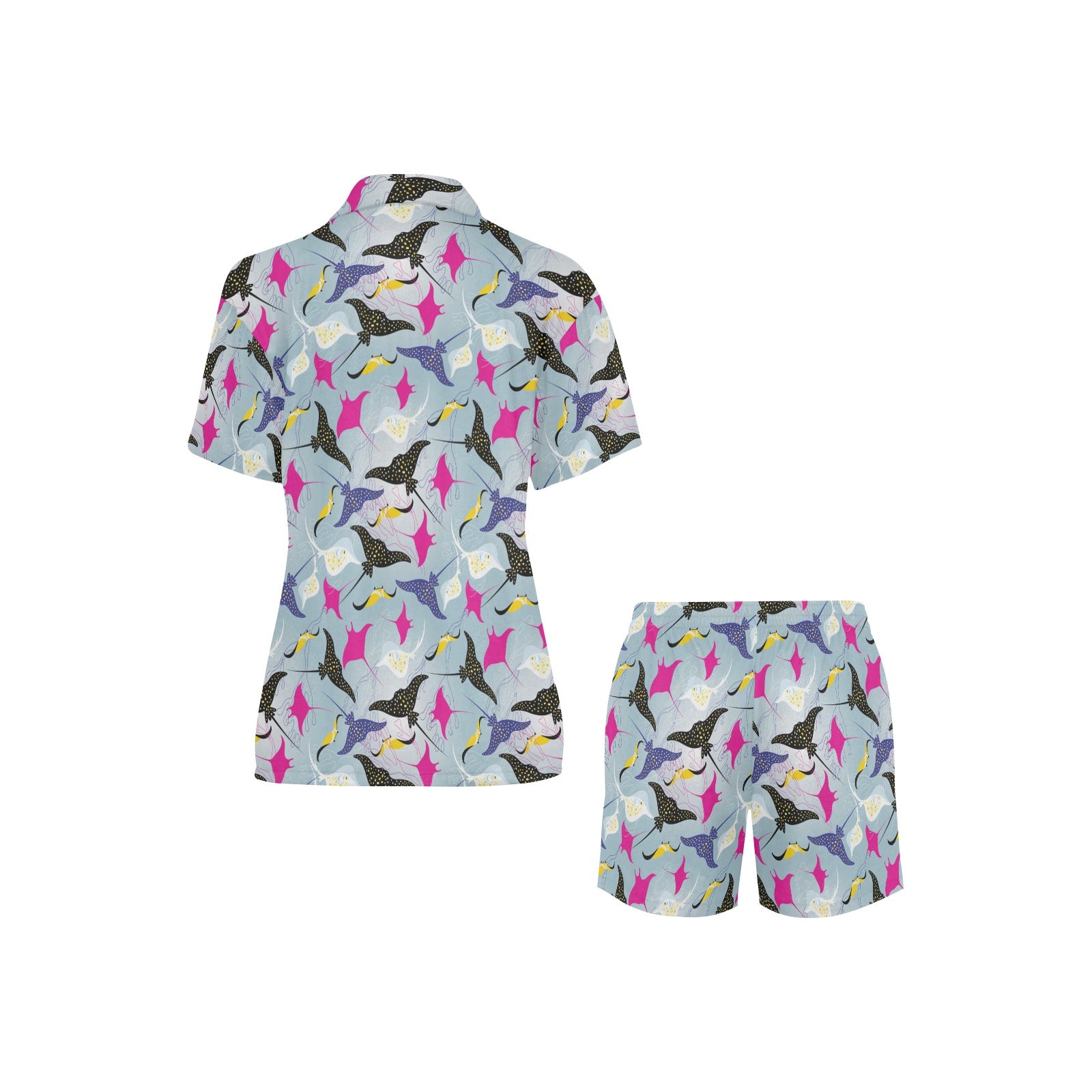 Stingray Pattern Print Design 01 Women's V-Neck Short Pajama Set
