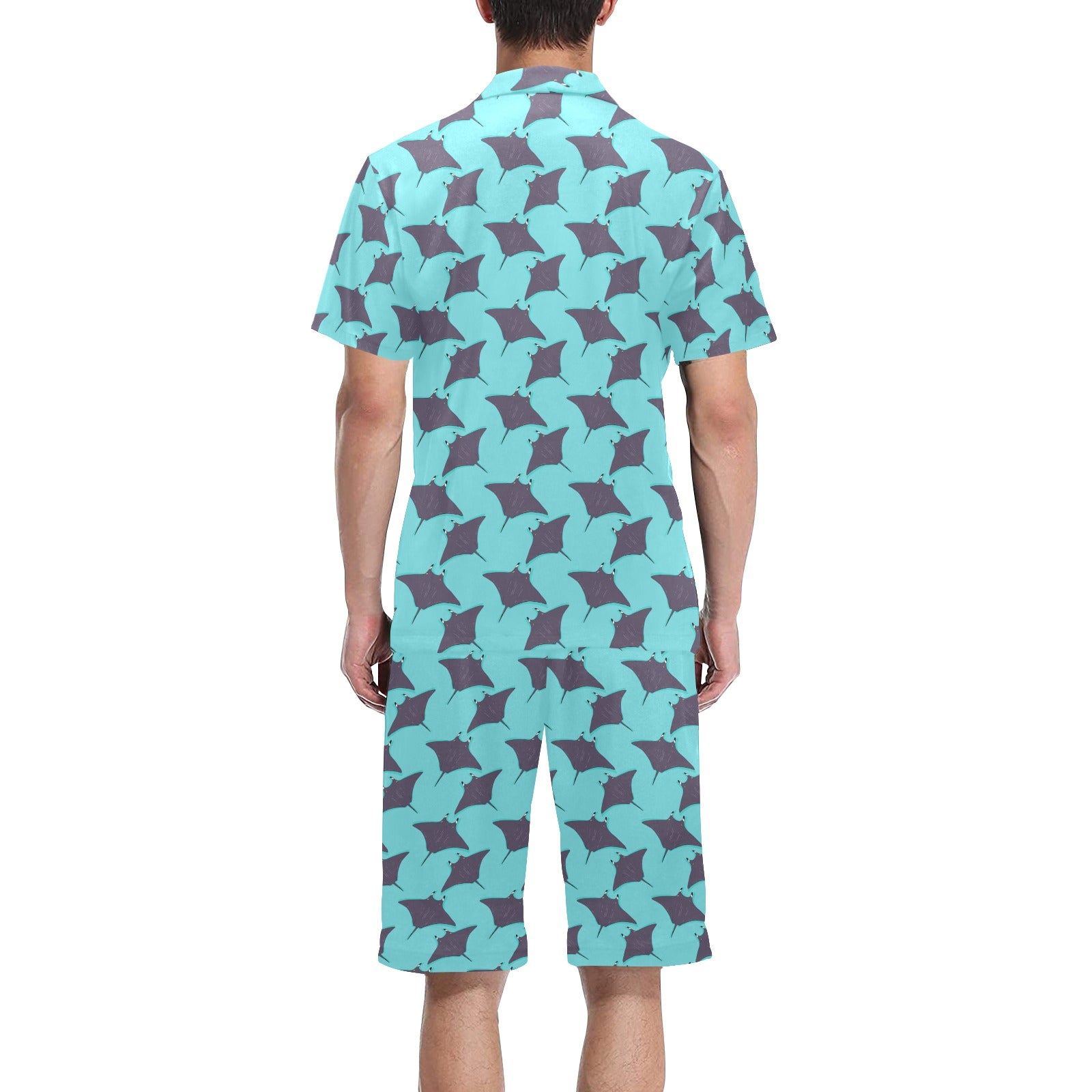 Stingray Pattern Print Design 02 Men's V-Neck Short Pajama Set