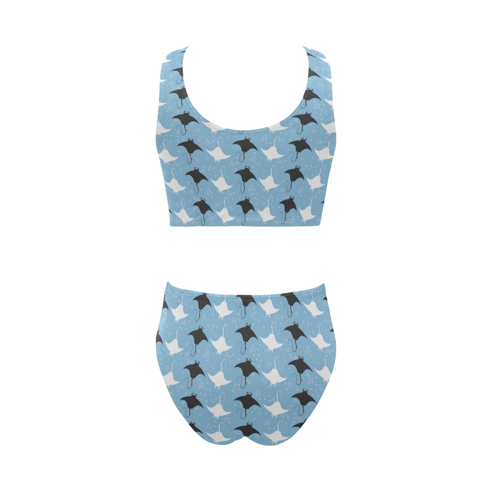 Stingray Pattern Print Design 03 Chest Bowknot High Waisted Bikini Swimsuit