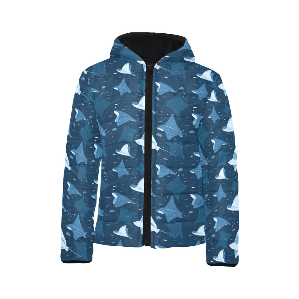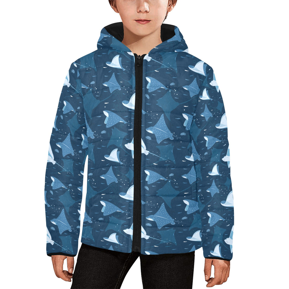 Stingray Pattern Print Design 04 Kids' Boys' Girls' Padded Hooded Jacket